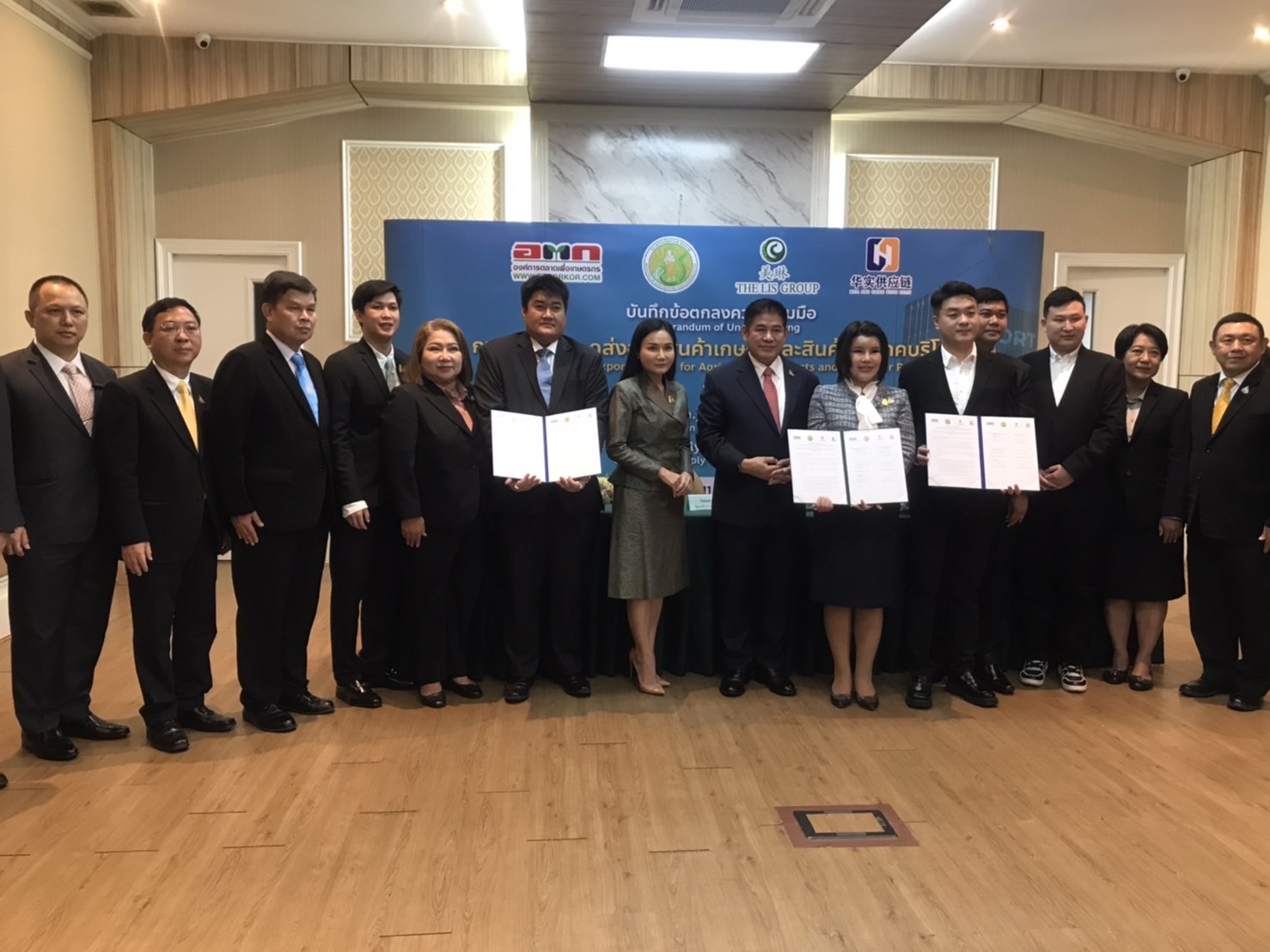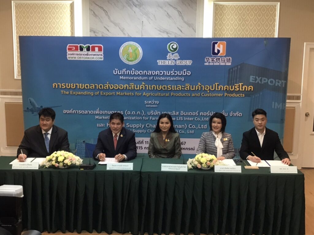ร้อยเอกธรรมนัส พรหมเผ่า รัฐมนตรีว่าการกระทรวงเกษตรและสหกรณ์ เป็นประธานในพิธีลงนามบันทึกข้อตกลงความร่วมมือ(MOU) การขยายตลาดส่งออกสินค้าเกษตรและสินค้าอุปโภคบริโภคระหว่างนายปณิธาน มีไชยโย ผู้อำนวยการองค์การตลาดเพื่อเกษตรกร หรือ อ.ต.ก.กับ บริษัท เดอะลิส อินเตอร์ คอร์ปอเรชั่น จำกัดและบริษัท หวา ฉี ซัพพลาย เชน ยูนนาน จำกัด