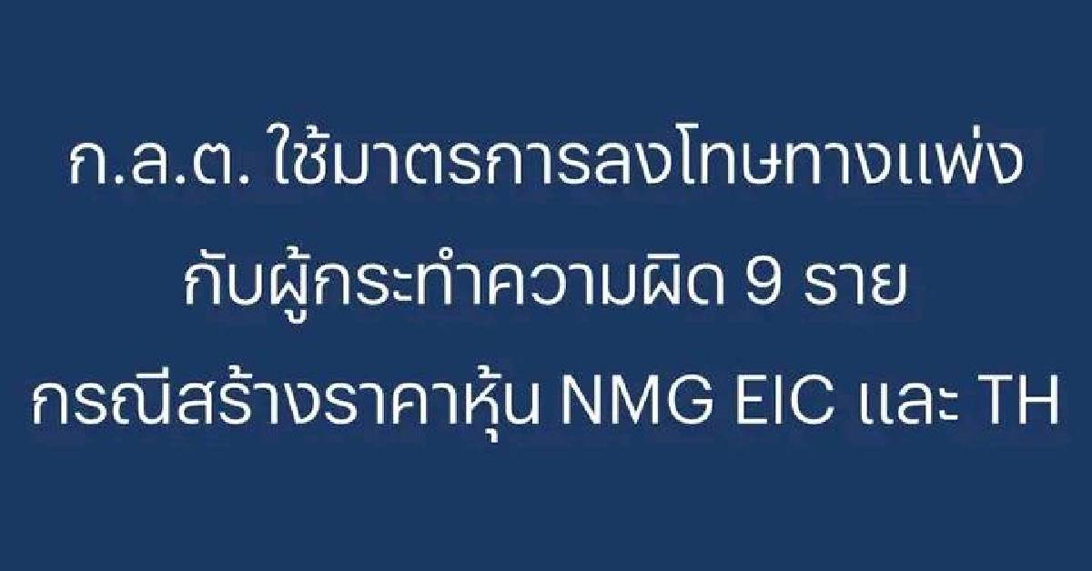 สำนักงานคณะกรรมการกำกับหลักทรัพย์และตลาดหลักทรัพย์ (ก.ล.ต.) ได้รับข้อมูลจากตลาดหลักทรัพย์แห่งประเทศไทย และตรวจสอบเพิ่มเติมพบว่าระหว่างเดือนมกราคม – มีนาคม 2560 กลุ่มผู้กระทำความผิด 9 ราย ที่มีความสัมพันธ์ทางธุรกิจ และ/หรือมีความสัมพันธ์ส่วนบุคคลโดยตรง หรือเชื่อมโยงกันผ่านบุคคลที่เกี่ยวข้อง ได้ร่วมกันส่งคำสั่งซื้อขาย หุ้นของบริษัท เนชั่น มัลติมีเดีย กรุ๊ป จำกัด (มหาชน) (NMG) บริษัท อุตสาหกรรม อีเล็คโทรนิคส์ จำกัด (มหาชน) (EIC) และบริษัท ตงฮั้ว โฮลดิ้ง จำกัด (มหาชน) (TH)ได้แก่ (1) นายยรรยงค์ อินทรสงเคราะห์ (2) นายภาณุรักษ์ แสงอร่าม (3) นายเอกวิชญ์ กมลเทพา (4) นายศิร์วสิษฏ์ สายน้ำผึ้ง (5) นางสาวกรรณิดา ตั้งกิจตรงเจริญ (6) นายภควันต์ วงษ์โอภาสี (7) นายกรวิช อัศวกุล (8) นางสาวกัญจนารัศม์ วงศ์พันธุ์ และ (9) นางมะลิวัลย์ วงศ์ชินศรี กรณีสร้างราคาหุ้นจำนวน 3 บริษัท โดยเรียกให้ชำระเงินตามมาตรการลงโทษทางแพ่งรวม 33,677,137.50 บาท และกำหนดระยะเวลาห้ามซื้อขายหลักทรัพย์และสัญญาซื้อขายล่วงหน้า รวมถึงห้ามเป็นกรรมการหรือผู้บริหาร ทั้งนี้ พบการดำเนินการ ส่งคำสั่งซื้อขายหลักทรัพย์ที่สอดรับและสนับสนุนกันในลักษณะของการผลักดันราคา การจับคู่ซื้อขายระหว่างกัน หรือการส่งคำสั่งซื้อขายหลักทรัพย์ในลักษณะขัดขวางการซื้อขายหลักทรัพย์ของบุคคลอื่น ทำให้บุคคลทั่วไปเข้าใจผิดเกี่ยวกับราคาหรือปริมาณการซื้อขายหลักทรัพย์และส่งคำสั่งซื้อขายในลักษณะต่อเนื่องกัน โดยมุ่งหมายให้ราคาหรือปริมาณการซื้อขายหลักทรัพย์ผิดไปจากสภาพปกติของตลาด โดยมีรายละเอียดดังนี้