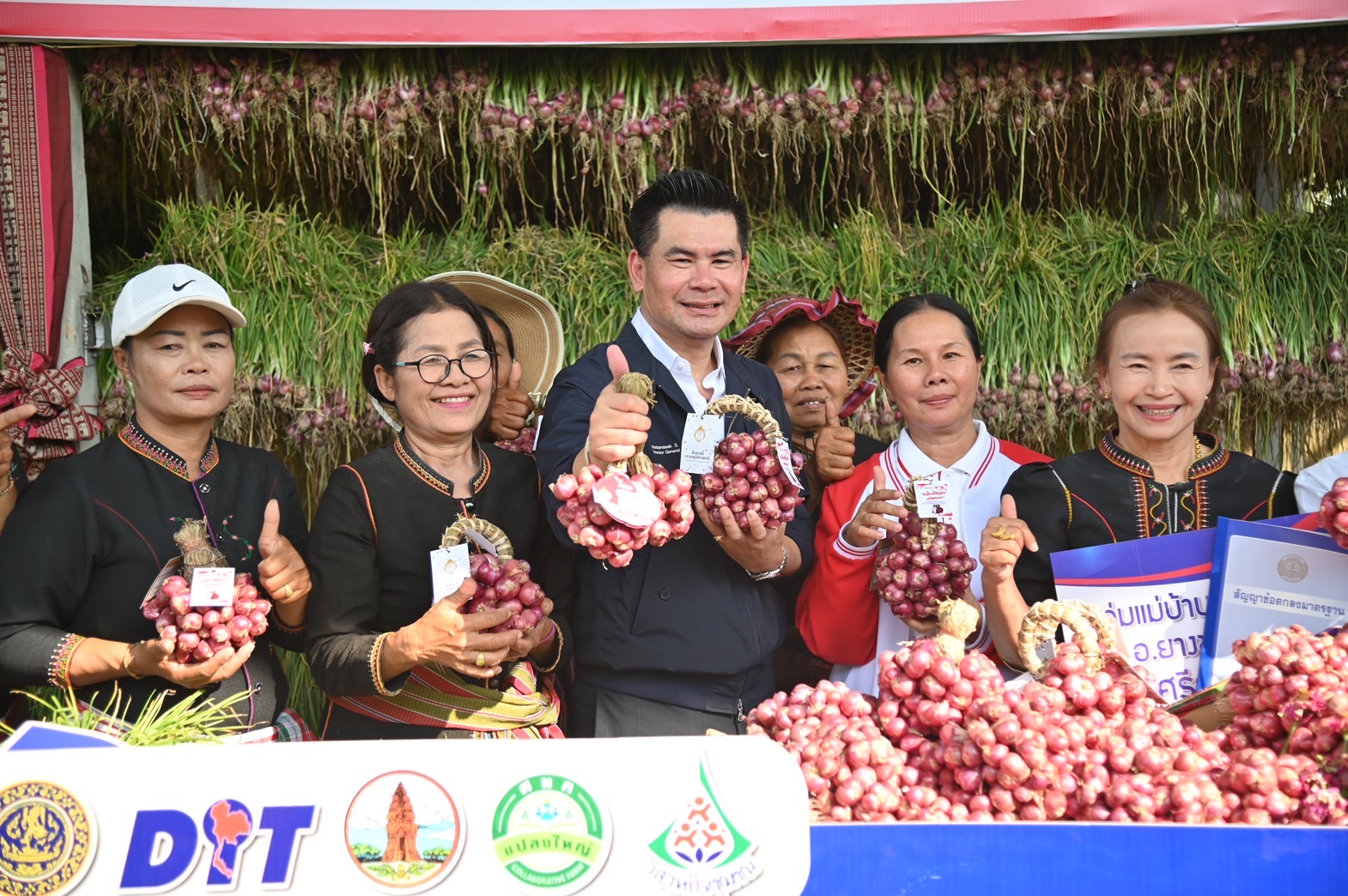 สำหรับหอมแดงที่รับซื้อ ผู้ประกอบการ ได้แก่ CP-Axtra (Makro Lotus) BigC Tops The mall จะนำไปกระจายผ่านสาขาของห้าง ผู้รวบรวมอีก 5 ราย จะรับซื้อและนำไปแปรรูปเป็นผลิตภัณฑ์ในรูปแบบอื่นๆ ส่วนสถานนีบริการน้ำมัน ทั้ง PT PTT Station บางจาก เชลล์ รับซื้อไปแจกเป็นของสมนาคุณให้แก่ผู้มาเติมน้ำมัน