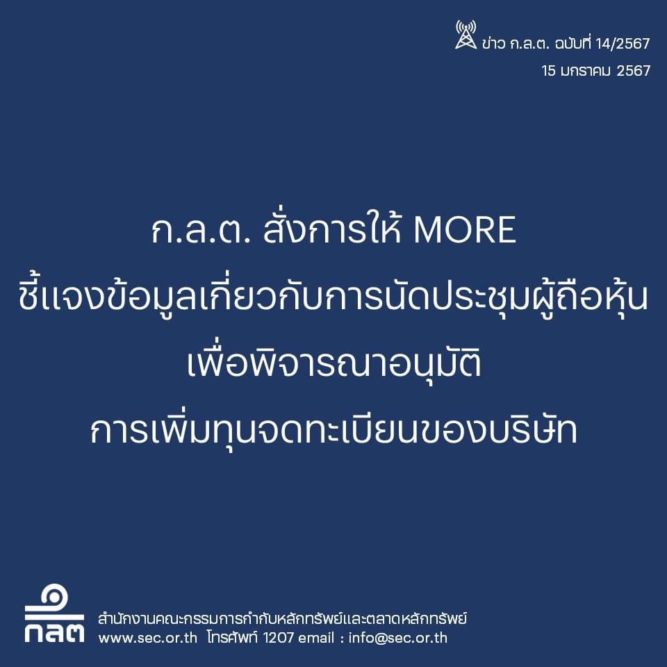 ก.ล.ต. จึงให้ MORE ชี้แจงข้อเท็จจริงและมาตรการแก้ไขในเรื่องดังกล่าว