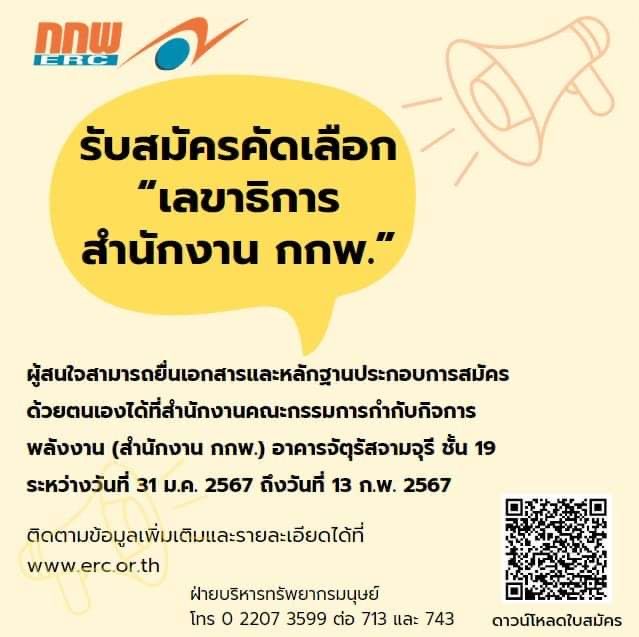 กรุงเทพฯ 15 ม.ค.- สำนักงาน กกพ.เปิดรับสมัคร เลขาฯ คนใหม่ 31 ม.ค.-13 ก.พ. 67 แทน “คมกฤช” เกษียณ 31 พ.ค. 2567