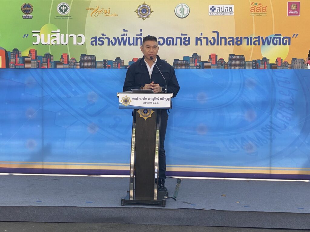 พล.ต.ท.ภาณุรัตน์ หลักบุญ เลขาธิการคณะกรรมการป้องกันและปราบปรามยาเสพติด (เลขาธิการ ป.ป.ส.) เป็นประธานในพิธีเปิดกิจกรรม “วินสีขาว สร้างพื้นที่ปลอดภัย ห่างไกลยาเสพติด” ในเขตดินแดง และเขตพญาไท พร้อมด้วยนายชาตรี วัฒนเขจร รองปลัดกรุงเทพมหานคร