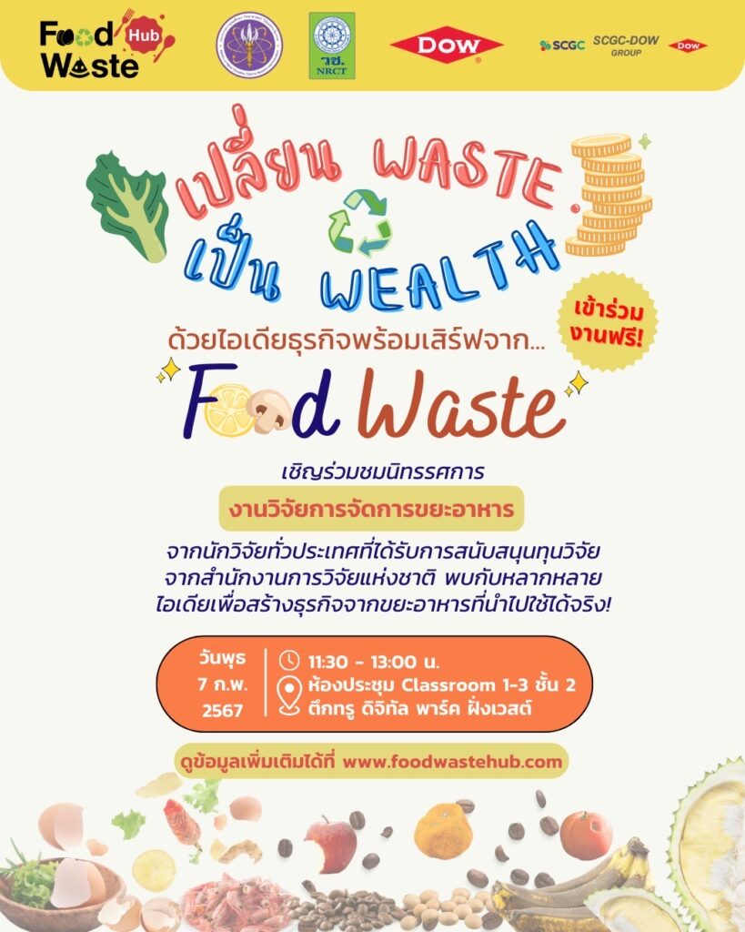 กรุงเทพฯ 22 ม.ค.– ชวนชมไอเดียธุรกิจ เปิดตัว Food Waste Hub เปลี่ยน ‘ขยะอาหาร’ เป็น ‘ความมั่งคั่งและยั่งยืน’ 7 ก.พ.นี้