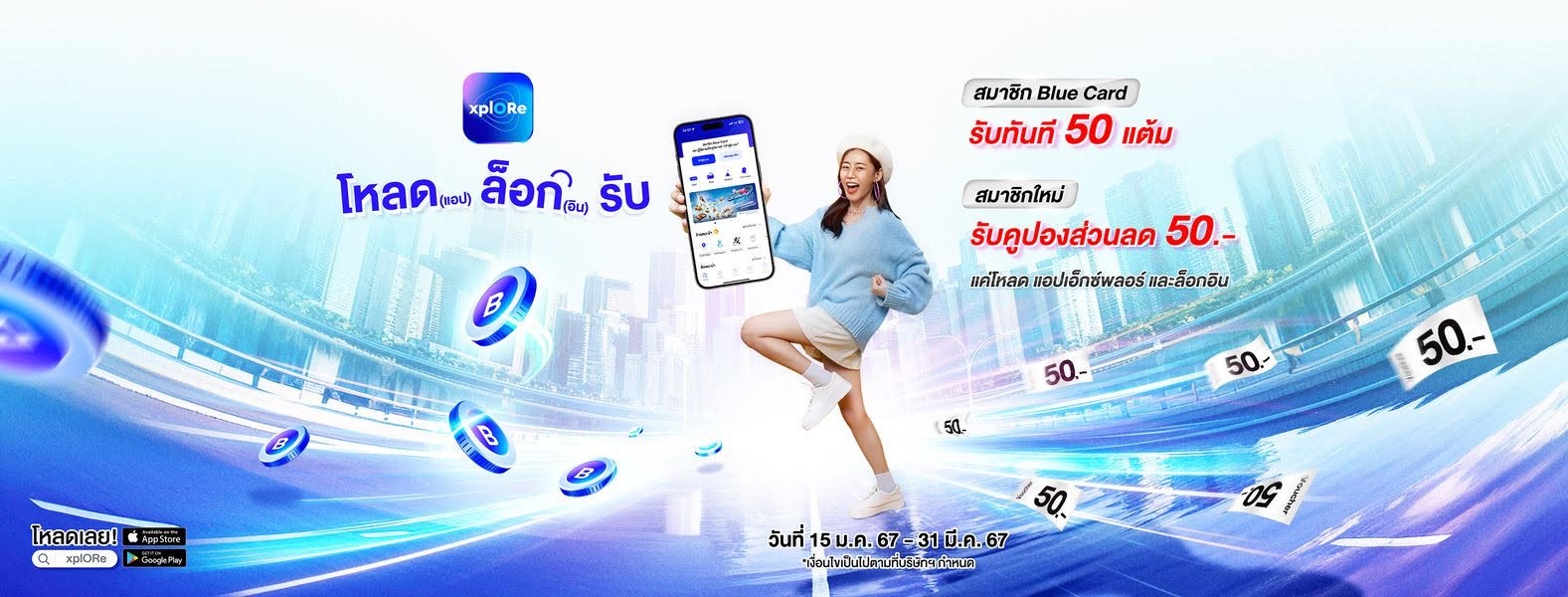 สำหรับสมาชิก Blue Card เพียงดาวน์โหลดและล๊อกอินเข้าใช้งานแอปพลิเคชัน xplORe ครั้งแรก รับฟรีทันทีคะแนน Blue Card 50 คะแนน โดยคะแนนดังกล่าวจะถูกสะสมเข้าบัญชี Blue Card ภายใน 72 ชั่วโมง สงวนสิทธิ์ 1 คน ต่อ 1 สิทธิ์ จำกัดจำนวนสิทธิ์ สำหรับสมาชิก Blue Card 450,000 รายแรกที่ล๊อกอินเข้าใช้งานแอปพลิเคชัน xplORe ครั้งแรก ตั้งแต่วันที่ 15 มกราคม 2567 ถึง 31 มีนาคม 2567 เท่านั้น.-511-สำนักข่าวไทย