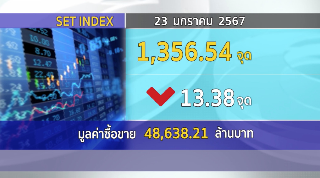 กทม. 23 ม.ค.- SET ปิดวันนี้ที่ 1,356.54 จุด ลดลง 13.38 จุด (-0.98%) มูลค่าซื้อขาย 48,638.21 ล้านบาท