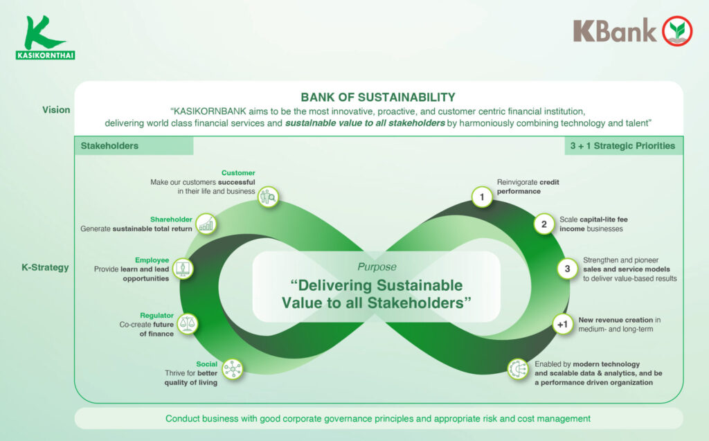 กรุงเทพฯ 26 ม.ค. – ธนาคารกสิกรไทย รับมือความท้าทาย ด้วยยุทธศาสตร์ 3+1 ส่งมอบคุณค่าที่ยั่งยืนให้แก่ผู้มีส่วนได้เสียทุกฝ่าย ทั้งลูกค้า ผู้ถือหุ้น พนักงาน หน่วยงานกำกับดูแล และสังคม เพื่อสร้างการเติบโตที่ยั่งยืน และภารกิจ +1 ที่จะสร้างรายได้ใหม่ในระยะกลางและระยะยาว