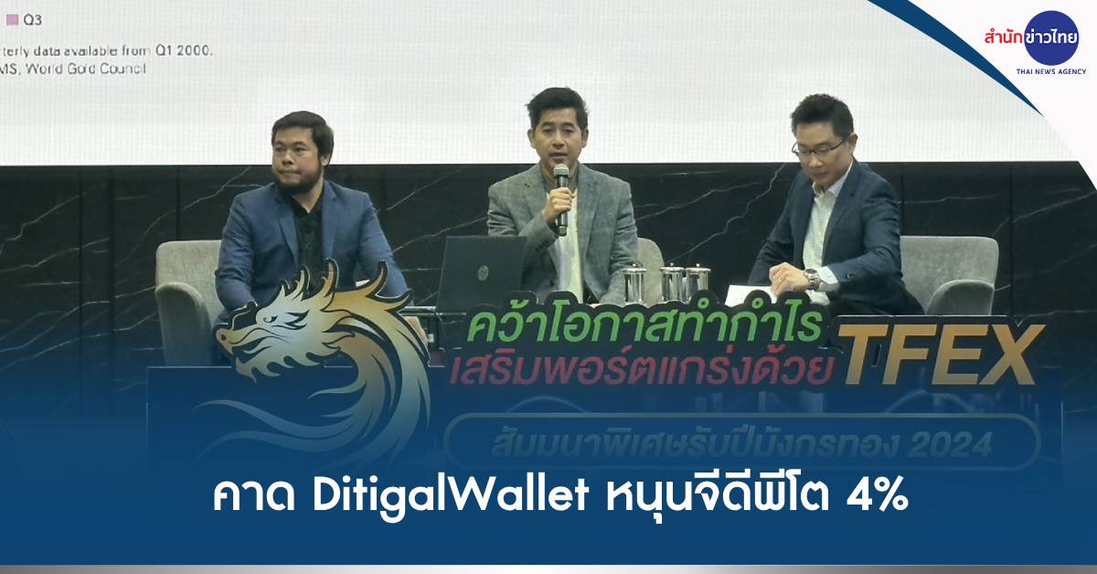 กรุงเทพฯ 28 ม.ค.-TFEX จัดสัมมนา “คว้าโอกาสทำกำไร เสริมพอร์ตแกร่งด้วย TFEX” นักวิเคราะห์คาด Ditigal Wallet หนุนจีดีพีปี 67 โตถึง 4% ชี้งบประมาณรัฐออก 2 รอบ ช่วยกระตุ้นเศรษฐกิจปี 67