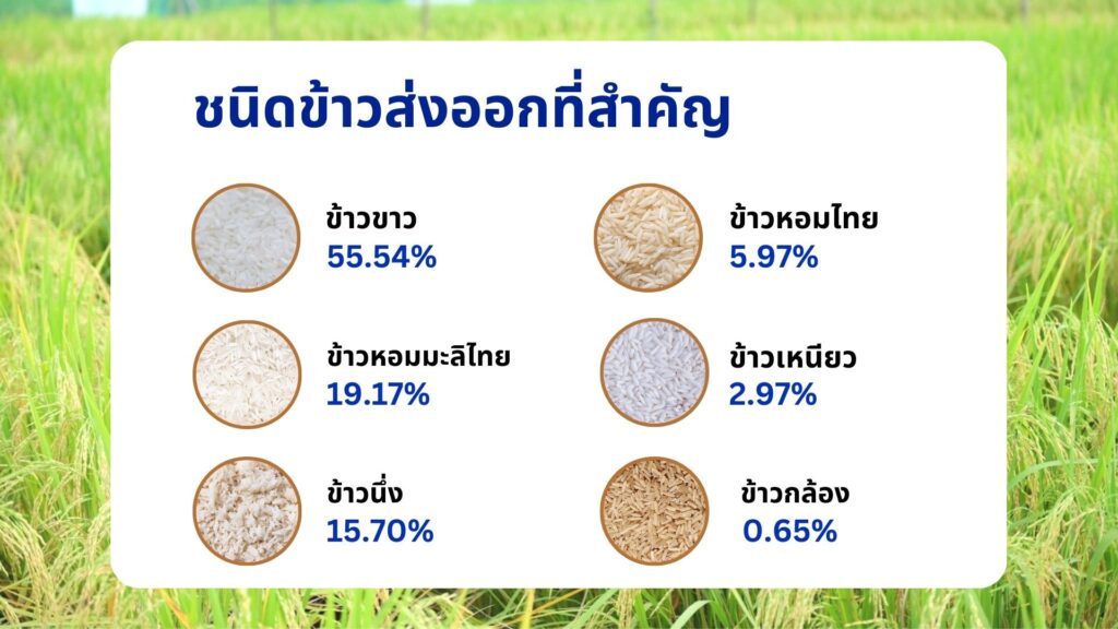 ทั้งนี้ โดยปัจจัยต่อการคาดการณ์ตัวเลขดังกล่าว ได้แก่ ผลผลิตข้าวของไทยที่คาดว่าจะลดลงจากปีก่อนร้อยละ 5.87 ซึ่งเป็นผลกระทบจากปรากฏการณ์เอลนีโญ และการส่งออกที่อาจเผชิญกับการแข่งขันและความท้าทายหลายประการ โดยมีปัจจัยจากปริมาณผลผลิตข้าวโลกที่มีแนวโน้มเพิ่มขึ้นมากกว่าปีที่ผ่านมา ทำให้ปริมาณอุปทานข้าวโลกเพิ่มขึ้น การนำเข้าข้าวของประเทศคู่ค้ามีแนวโน้มปรับตัวลดลง ส่วนหนึ่งเกิดจากความนิยมของการบริโภคข้าวลดลง อาทิ จีน ญี่ปุ่น และมาเลเซีย ทำให้การแข่งขันทางด้านราคารุนแรงขึ้น