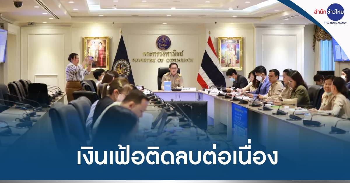 นายพูนพงษ์ นัยนาภากรณ์ ผู้อำนวยการสำนักงานนโยบายและยุทธศาสตร์การค้า เปิดเผยว่า ดัชนีราคาผู้บริโภคของไทย เดือนมกราคม 2567 เท่ากับ 106.98 เมื่อเทียบกับเดือนมกราคม 2566 ซึ่งเท่ากับ 108.18 ส่งผลให้อัตราเงินเฟ้อทั่วไปลดลงร้อยละ 1.11 ลดลงต่อเนื่องเป็นเดือนที่ 4 และต่ำสุดในรอบ 35 เดือน แม้โอกาสเงินเฟ้อจะยังคงติดลบต่อเนื่องมาจากแนวโน้นการลดค่าครองชีพของรัฐบาล และโอกาสในช่วงไตรมาสปีนี้ติดลบและเฉลี่ยแต่ละเดือนเงินเฟ้อจะมีทั้งบวกและลบ โดยแม้จะมองว่าจะเกิดปัญหาเงินฝืด แต่จะเป็นเงินฝืดทางเทคนิคมากกว่า ซึ่งจะเป็นไปตามการลดลงของราคาสินค้าในกลุ่มพลังงาน จากมาตรการลดค่าใช้จ่ายด้านพลังงานของภาครัฐ ประกอบกับราคาสินค้าในกลุ่มอาหารสดยังคงลดลงต่อเนื่องจากเดือนที่ผ่านมา โดยเฉพาะผักสดและเนื้อสัตว์ เนื่องจากปริมาณผลผลิตเข้าสู่ตลาดเพิ่มขึ้น รวมทั้งฐานราคาเดือนมกราคม 2566 ที่ใช้คำนวณเงินเฟ้อค่อนข้างสูง มีส่วนทำให้อัตราเงินเฟ้อลดลง สำหรับสินค้าและบริการอื่น ๆ ราคาเคลื่อนไหวในทิศทางปกติ