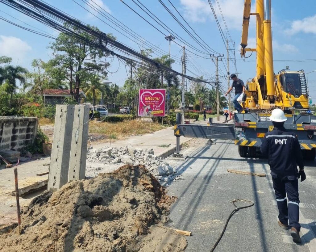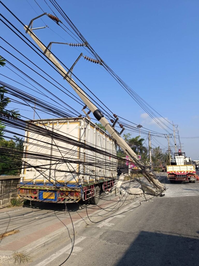 สมุทรปราการ 6 ก.พ. – MEA ระดมเจ้าหน้าที่แก้ไขเหตุรถบรรทุกชนเสาไฟฟ้าล้ม บริเวณซอยเทศบาลบางปู 58 สมุทรปราการ