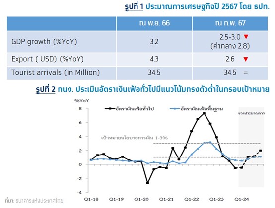 กรุงเทพฯ 8 ก.พ.-Krungthai COMPASS คาดกนง.ยังไม่ปรับทิศทางของการดำเนินนโยบายการเงินในระยะอันใกล้ เหตุเศรษฐกิจยังมีแนวโน้มขยายตัว ด้าน SCB EIC ฟันธง กนง.ไม่ลดดอกเบี้ยในปี 67