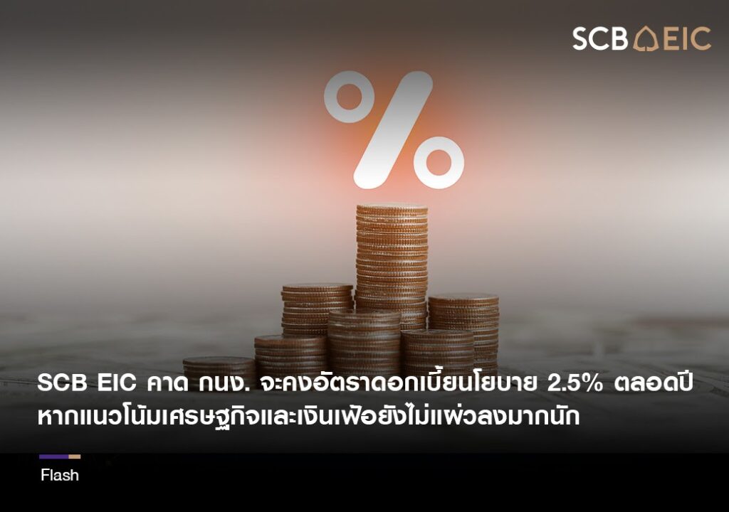 ด้านศูนย์วิจัยธนาคารไทยพาณิชย์ SCB EIC คาดว่า กนง. จะคงอัตราดอกเบี้ยนโยบาย 2.5% ไว้ตลอดปี 2567 โดยมองว่า กนง. จะพิจารณาแนวโน้มเศรษฐกิจและเงินเฟ้อไปข้างหน้าในระยะปานกลางถึงระยะยาว (Forward looking) มากกว่าตัวเลขที่เกิดขึ้นแล้ว (Backward looking) หากแนวโน้มเศรษฐกิจและเงินเฟ้อของไทยในระยะต่อไปยังเป็นไปตามที่ SCB EIC เคยคาดการณ์ไว้ว่า เศรษฐกิจจะขยายตัวได้ต่อเนื่องใกล้เคียงระดับศักยภาพที่ 3% ขณะที่อัตราเงินเฟ้อทั่วไปและอัตราเงินเฟ้อพื้นฐาน จะทยอยปรับสูงขึ้นเข้าสู่กรอบเป้าหมาย 1-3% ได้ กนง. จะยังมีแนวโน้มคงอัตราดอกเบี้ยนโยบายไว้ที่ระดับปัจจุบัน ซึ่งเป็นระดับที่สอดคล้องกับการขยายตัวของเศรษฐกิจ และเอื้อต่อการรักษาเสถียรภาพเศรษฐกิจการเงินในระยะยาว (Neutral rate)