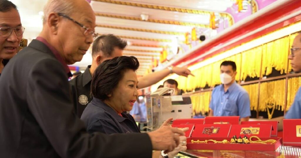 โดยนางพวงเพ็ชร และคณะ สคบ.ได้ตรวจเยี่ยมร้านค้าทองชั้นนำ จำนวน 8 แห่ง คือ 1.บริษัท ห้างขายทอง ทองใบเยาวราช (1988) จำกัด 2.บริษัท ห้างขายทองจินฮั้วเฮง จำกัด 3.บริษัท ห้างขายทองฮั่วเซ่งเฮง จำกัด 4.บริษัท เล่งหงส์ จำกัด 5.ห้างหุ้นส่วนจำกัด ห้างค้าทองยู่หลงกิมกี่ 6.บริษัท ที.พี.เอช (2004) จำกัด 7.บริษัท ทอง 24 กะรัต จำกัด และ 8.บริษัท ห้างขายทองเลี่ยงเซ่งเฮง จำกัด โดยได้ตรวจสอบคุณภาพทองคำตามประกาศคณะกรรมการว่าด้วยฉลากกำหนด ซึ่งร้านทองต้องแสดงราคาขายทองแท่งและทองรูปพรรณแต่ละวันให้ชัดเจน มีการแสดงราคารับซื้อคืนและมีการแสดงค่ากำเหน็จ มีป้ายบอกประเภทสินค้าชัดเจนว่าเป็นสร้อย แหวน กำไล มีการระบุปริมาณความบริสุทธิ์ของทองรูปพรรณ ระบุหน่วยเป็นกะรัต หรือเปอร์เซ็นต์ หรือร้อยละ หรือใช้สัญลักษณ์ K หรือ % แทนก็ได้ เช่น 96.5% หรือ 99.99% รวมถึงต้องระบุน้ำหนักของทองแต่ละชิ้นให้ชัดเจนระบุหน่วยเป็นกรัม หรือใช้สัญลักษณ์ ก หรือ g แทนก็ได้ อันนี้ยังต้องการแสดงราคาให้ระบุเป็นเงินสกุลไทย และจะระบุเป็นสกุลอื่น หรือใช้สัญลักษณ์ของสกุลเงินแทนก็ได้