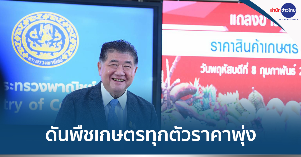 นายภูมิธรรม เวชยชัย รองนายกรัฐมนตรีและรัฐมนตรีว่าการกระทรวงพาณิชย์กล่าวว่าในช่วงหลายเดือนที่ผ่านมาราคาสินค้าเกษตรสำคัญ ไม่ว่าจะเป็นข้าว ข้าวโพค มันสำปะหลัง ยางพาราและปาล์มน้ำมันรวมถึงผลไม้ชนิดต่างๆทีราคาสูงขึ้น เช่น ราคาข้าวหอมมะลิ/ข้าวเหนียว ราคาเพิ่มขึ้น 12% มันสำปะหลัง เพิ่มขึ้น 49% ปาล์มน้ำมัน เพิ่มขึ้น 9% ยางพารา ยางแผ่นดิบ เพิ่มขึ้น 22% พืชหัว เช่น หอมแดง เพิ่มขึ้น 27% ข้าวโพดเลี้ยงสัตว์ เพิ่มขึ้น 6%