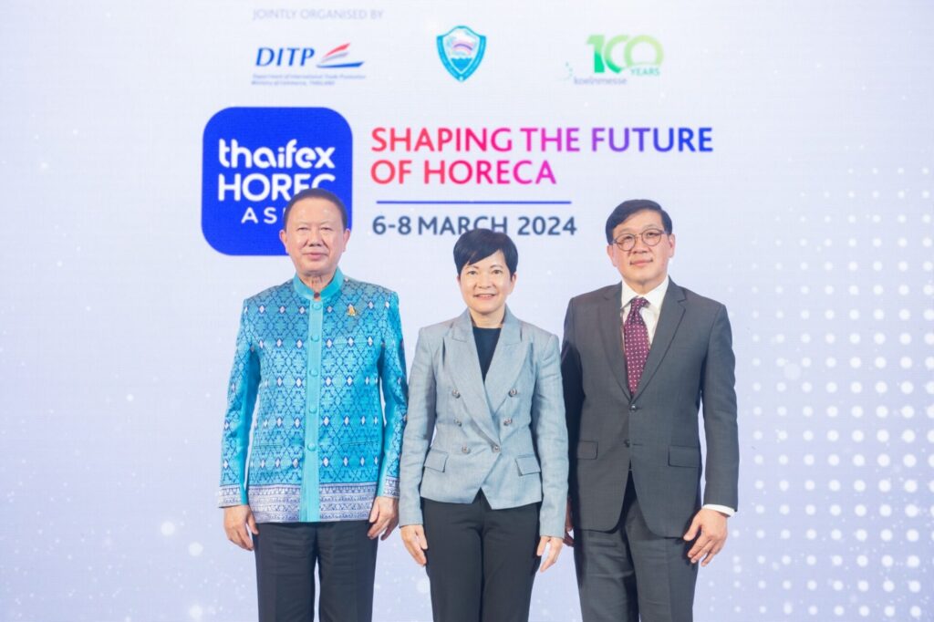 กรมส่งเสริมการค้าระหว่างประเทศ (DITP) หอการค้าไทย (TCC) และโคโลญเมสเซ่ เยอรมนี (KM) ประกาศจับมือจัดงาน THAIFEX – HOREC ASIA 2024 เป็นครั้งแรก เพื่อจัดแสดงสินค้ากลุ่มอุตสาหกรรม HoReCa (ธุรกิจโรงแรม ร้านอาหาร และการจัดเลี้ยง) ระหว่างวันที่ 6 – 8 มีนาคม 2567 ณ อิมแพ็คเมืองทองธานี กรุงเทพฯ อาคาร 9 – 12 คาดดึงดูดผู้ซื้อจากทั่วโลก 20,000 ราย พร้อมผลักดันให้ไทยเป็นศูนย์กลาง HoReCa แห่งเอเชีย