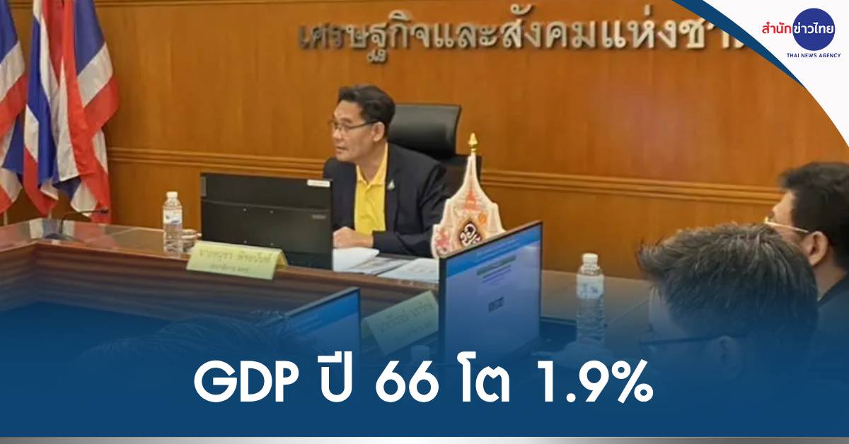 นายดนุชา พิชยนันท์ เลขาธิการสภาพัฒนาการเศรษฐกิจและสังคมแห่งชาติ (สศช.) เปิดเผยว่า ตัวเลข GDP ไตรมาส 4/66 ขยายตัวร้อยละ 1.7 โตต่อเนื่องจาก (GDP) ไตรมาส 3/66 ขยายตัวร้อยละ 1.5 ส่งผลให้เศรษฐกิจทั้งปี 66 ขยายตัวร้อยละ 1.9 จากเดิมสภาพัฒน์คาดการณ์จีดีพีในปี 66 ขยายตัวร้อยละ 2.5 ขณะที่การส่งออกเริ่มขยายตัวร้อยละ 3.4 นับว่าเติบโตในรอบ 5 ไตรมาส โดยกระทรวงการคลังเผยตัวเลขจีดีพีปี 66 ขยายตัวเพียงร้อยละ 1.8 คาดการณ์จีดีพีปี 67 เติบโตร้อยละ 2.8 ส่วน กนง.คาดการณ์จีดีพีปี 67 ขยายตัวร้อยละ 2.5-3