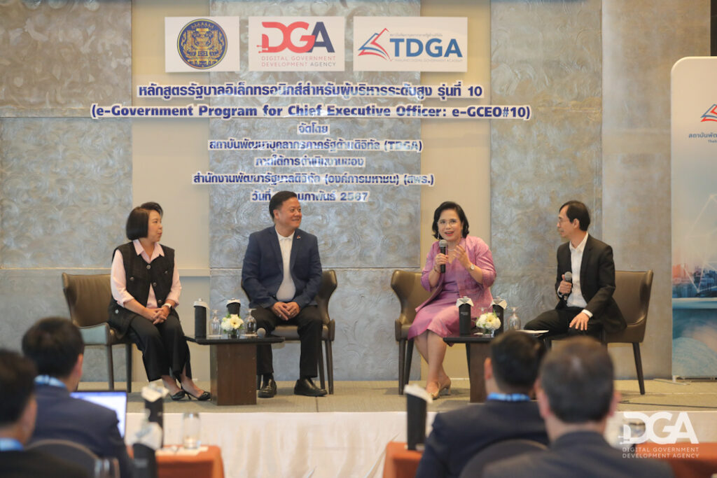 สถาบันพัฒนาบุคลากรภาครัฐด้านดิจิทัล (TDGA) โดย DGA จัดพิธีเปิดการฝึกอบรมหลักสูตรรัฐบาลอิเล็กทรอนิกส์สำหรับผู้บริหารระดับสูง (รอส.) รุ่นที่ 10 (e-GCEO#10) โดยได้รับเกียรติจาก นายวราวุธ ยันต์เจริญ กรรมการผู้ช่วยรัฐมนตรีประจำสำนักนายกรัฐมนตรี กล่าวเปิดงานและปาฐกถาพิเศษ ในหัวข้อ “พลิกวิกฤติเป็นโอกาสเพื่อมุ่งสู่การเป็นรัฐบาลดิจิทัล” โดยมี นางไอรดา เหลืองวิไล รองผู้อำนวยการ รักษาการแทน ผู้อำนวยการสำนักงานพัฒนารัฐบาลดิจิทัล กล่าวรายงานความเป็นมาของหลักสูตรพร้อมกล่าวให้การต้อนรับ ผู้บริหารระดับสูงสุดของหน่วยงานรัฐที่สนใจเข้าร่วมอบรมในครั้งนี้ ณ โรงแรมพูลแมน คิงเพาเวอร์ กรุงเทพ (รางน้ำ) เมื่อวันที่ 14 กุมภาพันธ์ 2567