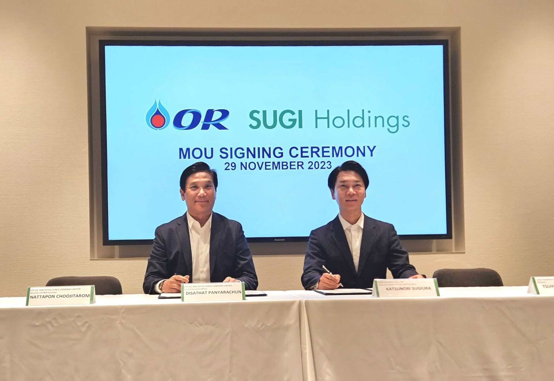 นายดิษทัต ปันยารชุน ประธานเจ้าหน้าที่บริหาร บริษัท ปตท. น้ำมันและการค้าปลีก จำกัด (มหาชน) หรือ โออาร์ และ นายคัทซึโนริ สุกิอุระ (Katsunori Sugiura) ผู้แทนประธานกรรมการบริหารและผู้อำนวยการใหญ่ บริษัท สุกิ โฮลดิ้งส์ จำกัด (Representative Director & President Sugi Holdings) หนึ่งในผู้นำธุรกิจเครือข่ายร้านขายยาและผู้นำด้านแพลตฟอร์มนาโนเทคโนโลยีรายใหญ่ที่สุดและเติบโตเร็วที่สุดแห่งหนึ่งของญี่ปุ่น ร่วมลงนามข้อตกลงความร่วมมือเป็นพันธมิตรทางธุรกิจ ณ กรุงโตเกียว ประเทศญี่ปุ่น เพื่อศึกษาโอกาสทางการตลาดสุขภาพและความงามในประเทศไทย พร้อมคัดสรรผลิตภัณฑ์คุณภาพดี คุ้มค่า และมีเอกลักษณ์โดนใจเพื่อตอบโจทย์ความต้องการของผู้บริโภคชาวไทยในปัจจุบัน