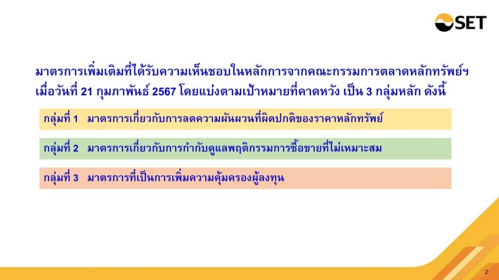 2.มาตรการเกี่ยวกับการกำกับดูแลพฤติกรรมการซื้อขายที่ไม่เหมาะสม