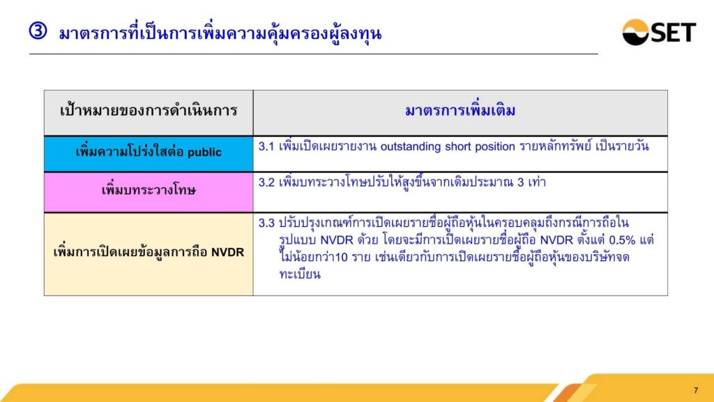 3.มาตรการที่เป็นการเพิ่มความคุ้มครองผู้ลงทุน