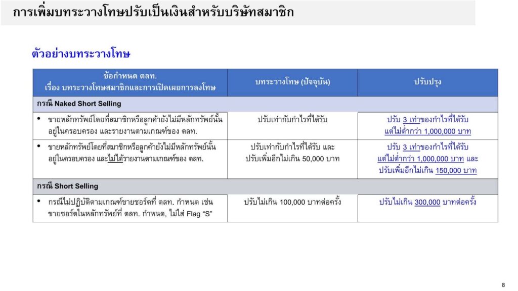 ส่วนที่ 3 มาตรการที่เป็นการเพิ่มความคุ้มครองผู้ลงทุน โดยเพิ่มความโปร่งใสต่อนักลงทุน ทั้งการเปิดเผยรายงานข้อมูลการทำธุรกรรม Short Sell รายหลักทรัพย์ เป็นรายวัน เพิ่มบทระวางโทษปรับสูงขึ้นจากเดิม 3 เท่า