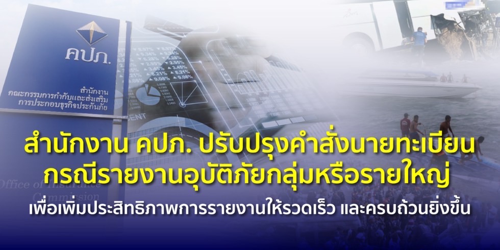 กรุงเทพฯ 28 ก.พ.- คปภ. แก้ไขคำสั่งนายทะเบียน “อุบัติภัยกลุ่มหรือรายใหญ่” หวังให้ คปภ. ติดตาม ชดใช้สินไหมตามกรมธรรม์ ทันท่วงที