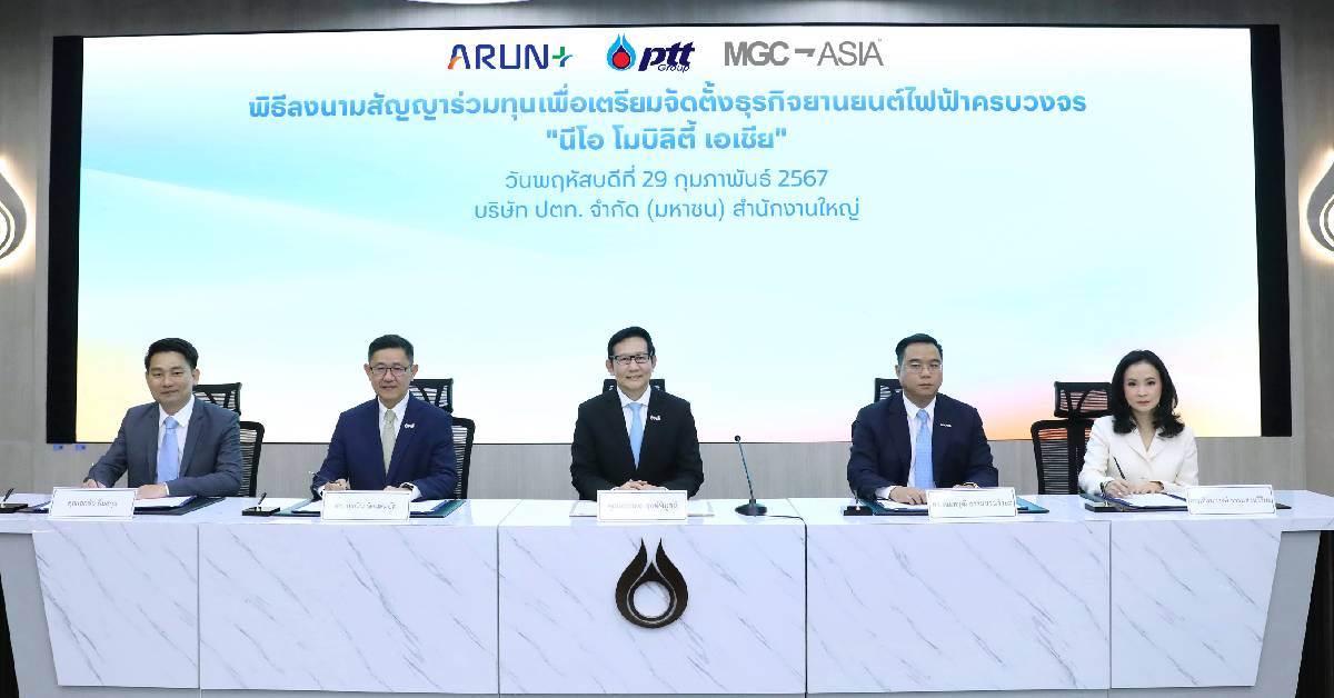 นายอรรถพล ฤกษ์พิบูลย์ ประธานเจ้าหน้าที่บริหารและกรรมการผู้จัดการใหญ่ บริษัท ปตท. จำกัด (มหาชน) เป็นประธานในพิธีลงนามสัญญาเพื่อเตรียมจัดตั้งบริษัทร่วมทุน บริษัท นีโอ โมบิลิตี้ เอเชีย จำกัด (นีโอ โมบิลิตี้ เอเชีย) ระหว่าง กลุ่มบริษัทอรุณ พลัส และ กลุ่มบริษัท มิลเลนเนียม กรุ๊ป คอร์ปอเรชั่น (เอเชีย) จำกัด (มหาชน) (MGC-ASIA) เพื่อดำเนินธุรกิจจัดจำหน่ายยานยนต์ไฟฟ้าครบวงจรในประเทศไทย เช่น บริการสถานีอัดประจุไฟฟ้า บริการประกันภัย บริการสินเชื่อเช่าซื้อ ลีสซิ่ง สินเชื่อรีไฟแนนซ์และการเงินอย่างครบวงจร บริการให้เช่ายานยนต์ไฟฟ้า บริการหลังการขาย ศูนย์เช็คระยะ เปลี่ยนอะไหล่ ตลอดจนซ่อมสีและตัวถัง เป็นต้น