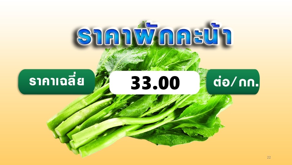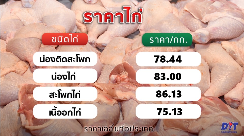 ส่วนมันสำปะหลัง ทรงตัวอยู่ที่กิโลกรัมละ 3.65 บาท ข้าวโพดเลี้ยงสัตว์ ราคาทรงตัวเช่นกัน เนื่องจากผลผลิตหมดแล้ว โดยเฉลี่ยกิโลกรัมละ 9.63 บาท ราคารับซื้อหน้าโรงงาน อยู่ที่ 10.26 บาท ส่วนผลปาล์มน้ำมัน อ่อนตัวลงเล็กน้อย เฉลี่ยกิโลกรัมละ 5 บาท 55 สตางค์ สอดคล้องราคาน้ำมันปาล์มดิบ หรือ CPO ชะลอตัวลงเฉลี่ยกิโลกรัมละ 32.38 บาท จากสัปดาห์ก่อนที่ 32.45 บาท โดยราคาน้ำมันปาล์มขวด เฉลี่ยขวดลิตรละ 45 บาท และในส่วนของอาหารสด ส่วนใหญ่ราคาทรงตัวทั้ง เนื้อไก่ มีทั้งปรับขึ้น-ลงเล็กน้อยตามชิ้นส่วน ไข่ไก่ เฉลี่ยเบอร์ 3 ฟองละ 3.81 บาทและผักสด ที่ปรับขึ้นลงตามกลไกตลาดปกติ