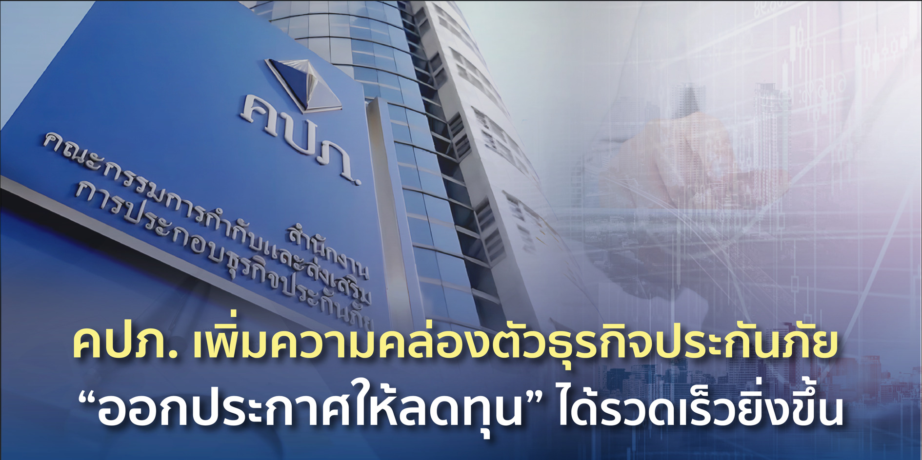 กรุงเทพฯ 5 มี.ค. -คปภ. ลดขั้นตอนธุรกิจประกันภัย “ลดทุนจดทะเบียน” หวังเพิ่มความคล่องตัว การฟื้นฟูกิจการ เร่งช่วยเหลือก่อนเสนอบอร์ด รับทราบ