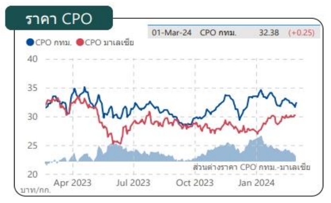 นายวีรพัฒน์ เกียรติเฟื่องฟู ผู้อำนวยการสำนักงานนโยบายและแผนพลังงาน (สนพ.) เผยถึงสถานการณ์ราคาน้ำมันเชื้อเพลิงชีวภาพไทย พบว่า ราคาน้ำมันไบโอดีเซล อ้างอิงเฉลี่ยระหว่างวันที่ 4 – 10 มีนาคม 67 อยู่ที่ 34.60 บาทต่อลิตร ลดลง 0.46 บาทต่อลิตร จากสัปดาห์ก่อน จากสถานการณ์ราคาผลปาล์มน้ำมัน ณ วันที่ 26 กุมภาพันธ์ – 1 มีนาคม 2567 ปรับลดลงมาอยู่ที่ 32.00 บาทต่อกิโลกรัม ขณะนี้ราคาน้ำมันปาล์มดิบมาเลเซีย เฉลี่ยอยู่ที่ 29.97 บาทต่อกิโลกรัม จากข้อมูลปริมาณการใช้เดือนมกราคม 2567 พบว่า มีการใช้น้ำมันดีเซลประมาณ อยู่ที่ 67.88 ล้านลิตรต่อวัน ส่วนปริมาณใช้น้ำมันไบโอดีเซล B100 4.54 ล้านลิตรต่อวัน และมีปริมาณการผลิตน้ำมันไบโอดีเซล อยู่ที่ 4.40 ล้านลิตรต่อวัน