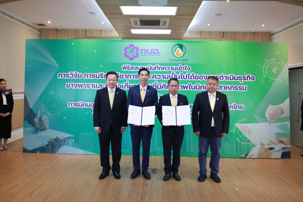 นายณกรณ์ ตรรกวิรพัท ผู้ว่าการการยางแห่งประเทศไทย กล่าวว่า ภายใต้ความร่วมมือครั้งนี้ ทั้ง 2 หน่วยงาน มีความตั้งใจในการผสานศักยภาพองค์ความรู้เฉพาะทาง ทั้งความเชี่ยวชาญเฉพาะทางด้านยางพาราของ กยท. และด้านการบริหารจัดการนิคมอุตสาหกรรมของ กนอ. ซึ่ง กยท. พร้อมร่วมสนับสนุน ส่งเสริมการศึกษา วิจัย พัฒนา การเพิ่มมูลค่าผลิตภัณฑ์ยาง โดยมุ่งเน้นการแปรรูปจากผลผลิตยางที่มาจากเกษตรกรชาวสวนยาง และสนับสนุนการลงทุนจัดตั้งนิคมอุตสาหกรรมด้านยางพารา ตั้งแต่ต้นน้ำถึงปลายน้ำ ในพื้นที่ของ กยท. และ กนอ. รวมถึงกิจกรรมส่งเสริมการลงทุนในนิคมอุตสาหกรรมด้านยางพารา เพื่อให้เกิดการดำเนินธุรกิจยางพาราครบวงจรทั้งกระบวนการ ซึ่งนิคมอุตสาหกรรมยางจะเป็นส่วนสำคัญต่อการพัฒนา เพิ่มรายได้ และสร้างความยั่งยืนทางอาชีพให้กับชาวสวนยาง สถาบันเกษตรกร และเพื่อประโยชน์ที่เพิ่มขึ้นต่อทุกภาคส่วนที่เกี่ยวข้อง ตลอดจนพัฒนาเศรษฐกิจของประเทศให้ดียิ่งขึ้น