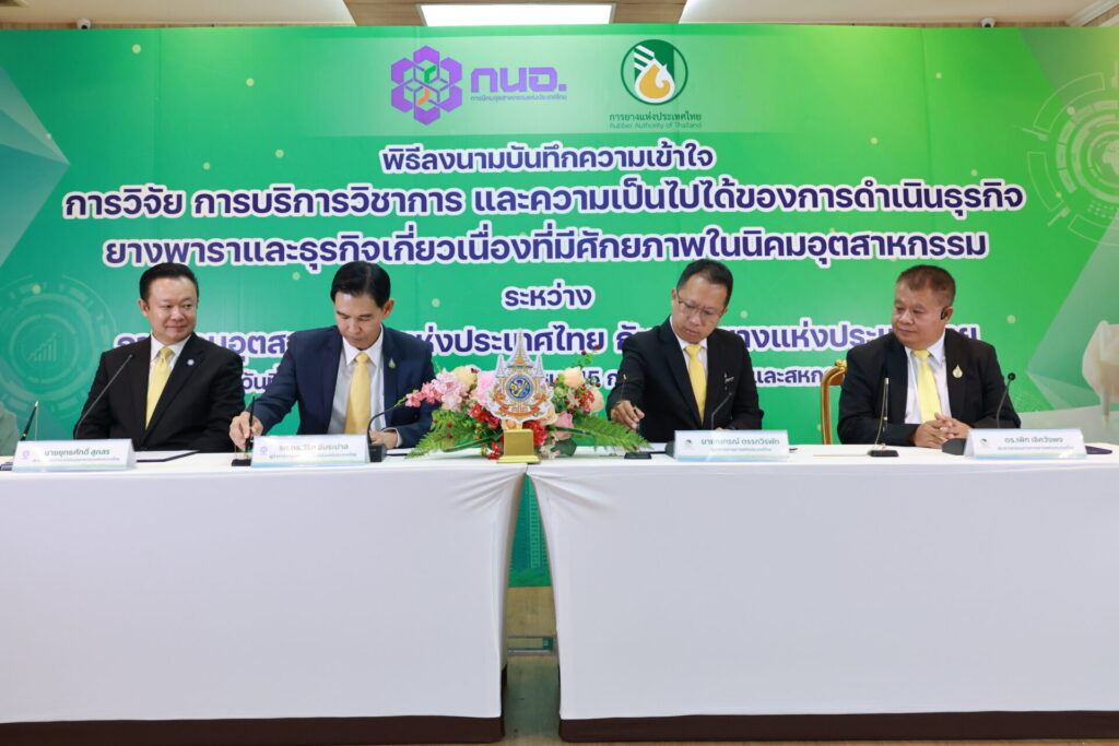 นายวีริศ อัมระปาล ผู้ว่าการ กนอ. กล่าวว่า กนอ. เล็งเห็นว่า กยท.เป็นหน่วยงานที่มีศักยภาพ และมีความพร้อมที่จะร่วมกันสนับสนุนการดำเนินงานให้บรรลุวัตถุประสงค์ตามนโยบายรัฐบาลในการขับเคลื่อนอุตสาหกรรมยางพาราของประเทศ ทั้งนี้ แนวโน้มของอุตสาหกรรมยางพาราโดยรวมปี 2567-2568 คาดว่ายังมีทิศทางขยายตัวต่อเนื่องทั้งด้านผลผลิตและความต้องการใช้ จากภาวะฟื้นตัวของอุตสาหกรรมทั้งตลาดในและต่างประเทศ อาทิ กลุ่มยานยนต์ ถุงมือยาง อุปกรณ์การแพทย์ โครงสร้างพื้นฐานที่มีแนวโน้มในการใช้ยางในการก่อสร้างเพิ่มขึ้น รวมถึงมาตรการของภาครัฐในการรักษาเสถียรภาพราคายาง ดังนั้น กนอ. และ กยท. จะร่วมกันพัฒนาบุคลากรและองค์ความรู้เกี่ยวกับยางพาราในภาคอุตสาหกรรม เพื่อขับเคลื่อนอุตสาหกรรมยางพาราของประเทศอย่างยั่งยืน