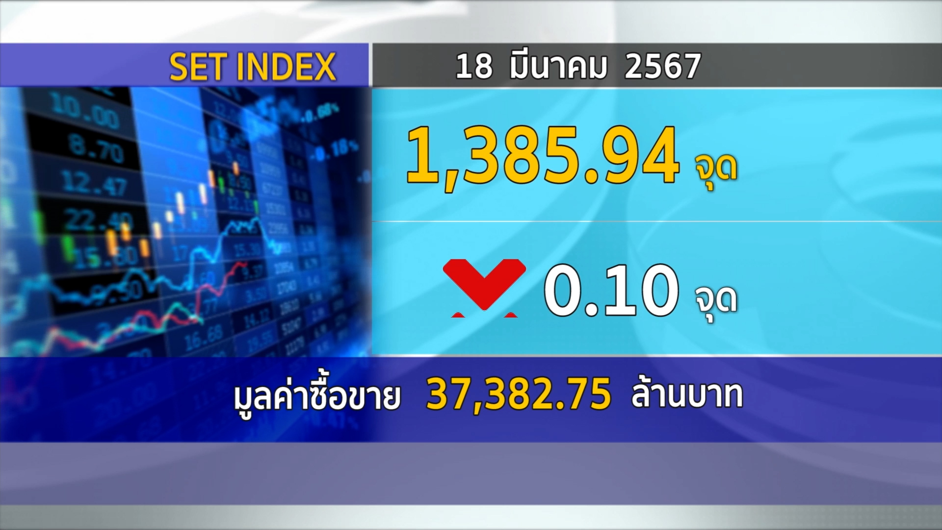กทม. 18 มี.ค.- SET ปิดวันนี้ 1,385.94 จุด ลดลง 0.10 จุด (-0.01%) มูลค่าซื้อขาย 37,382.75 ล้านบาท