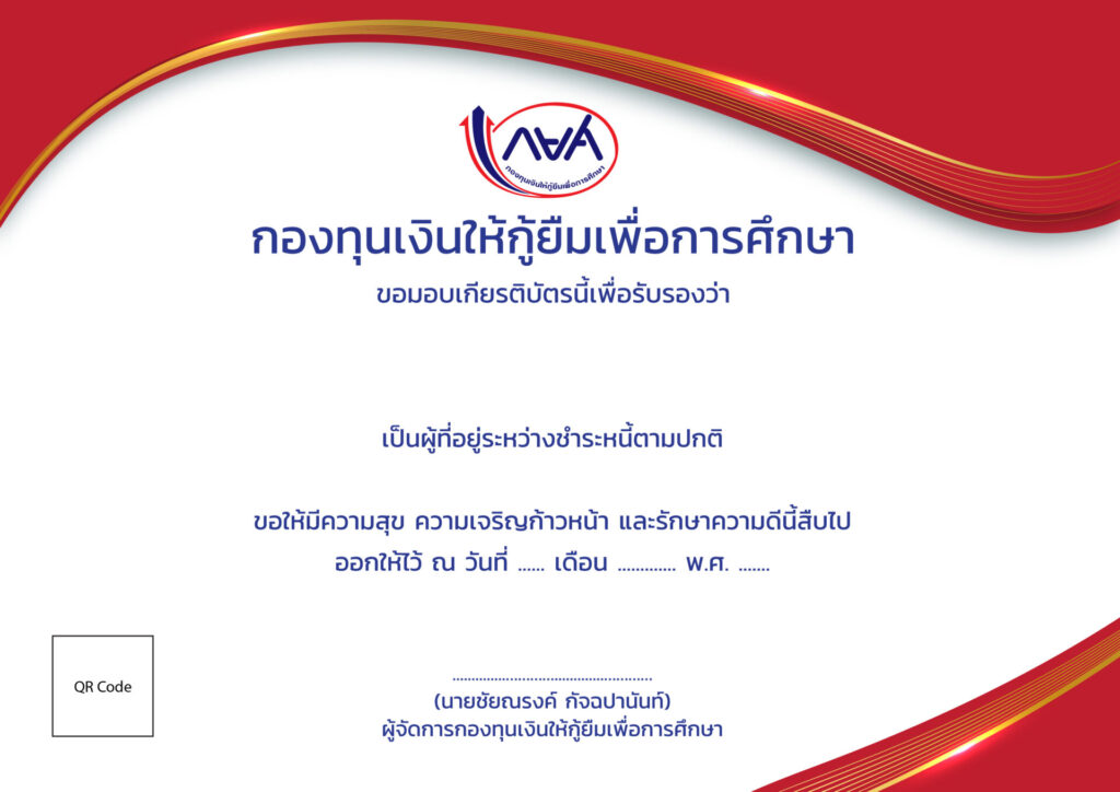 นายชัยณรงค์ กัจฉปานันท์ ผู้จัดการกองทุนเงินให้กู้ยืมเพื่อการศึกษา เปิดเผยว่า ขณะนี้ กองทุนฯได้จัดทำเกียรติบัตรขึ้นเพื่อมอบให้แก่ผู้กู้ยืมเงินที่มีประวัติการชำระหนี้ที่ดี จำนวน 2.9 ล้านราย เพื่อเป็นการขอบคุณและเป็นขวัญกำลังใจให้แก่ผู้กู้ยืมเงินรุ่นพี่ที่ส่งมอบโอกาสทางการศึกษาที่มีค่าให้แก่รุ่นน้อง โดยแบ่งกลุ่มผู้กู้ยืมเงินที่มีประวัติการชำระหนี้ที่ดีเป็น 3 ประเภท ได้แก่ ประเภทที่ 1 กลุ่มผู้กู้ดีเลิศ : ผู้กู้ยืมที่ไม่เคยผิดนัดชำระหนี้เลยแม้แต่ครั้งเดียว และมีสถานะปิดบัญชีเป็นที่เรียบร้อยแล้ว