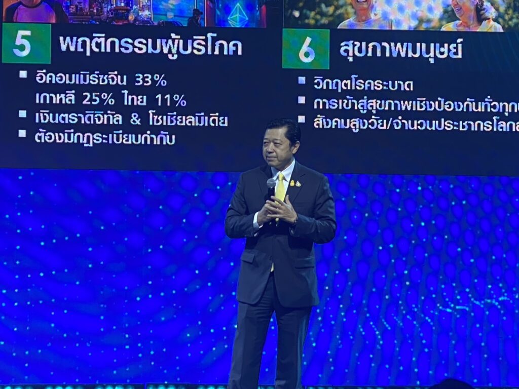 นายอาทิตย์ นันทวิทยา ประธานเจ้าหน้าที่บริหาร บริษัท เอสซีบี เอ็กซ์ จำกัด (มหาชน) กล่าวว่า อยากถามว่า เมื่อทุกคนรับรู้สภาพปัญหา ทำไมไม่แก้ไขอุปสรรคการลงทุน เหมือนกับหลายประเทศ จึงอยากให้ทุกฝ่ายร่วมกับปลดล็อคอุปสรรคต่างๆ เพื่อให้เดินหน้าต่อไปได้ ยอมรับว่า โลกยุคใหม่เดินไปข้างหน้าเร็วมาก โดยเฉพาะด้านเทคโนโลยี ต้องวิ่งเร็วและวิ่งไม่หยุด ผู้นำทุกองค์กรต้องเปลี่ยนแปลง ตัดสินใจด้วยความรวดเร็ว การพัฒนาระบบ AI มาทำงานแทนคน ต้องสื่อสารให้คนในองค์กรให้ปรับตัวรองรับการพัฒนา เพื่อทำงานด้านอื่นแทน AI จึงไม่ใช่การแย่งงานทั้งหมด