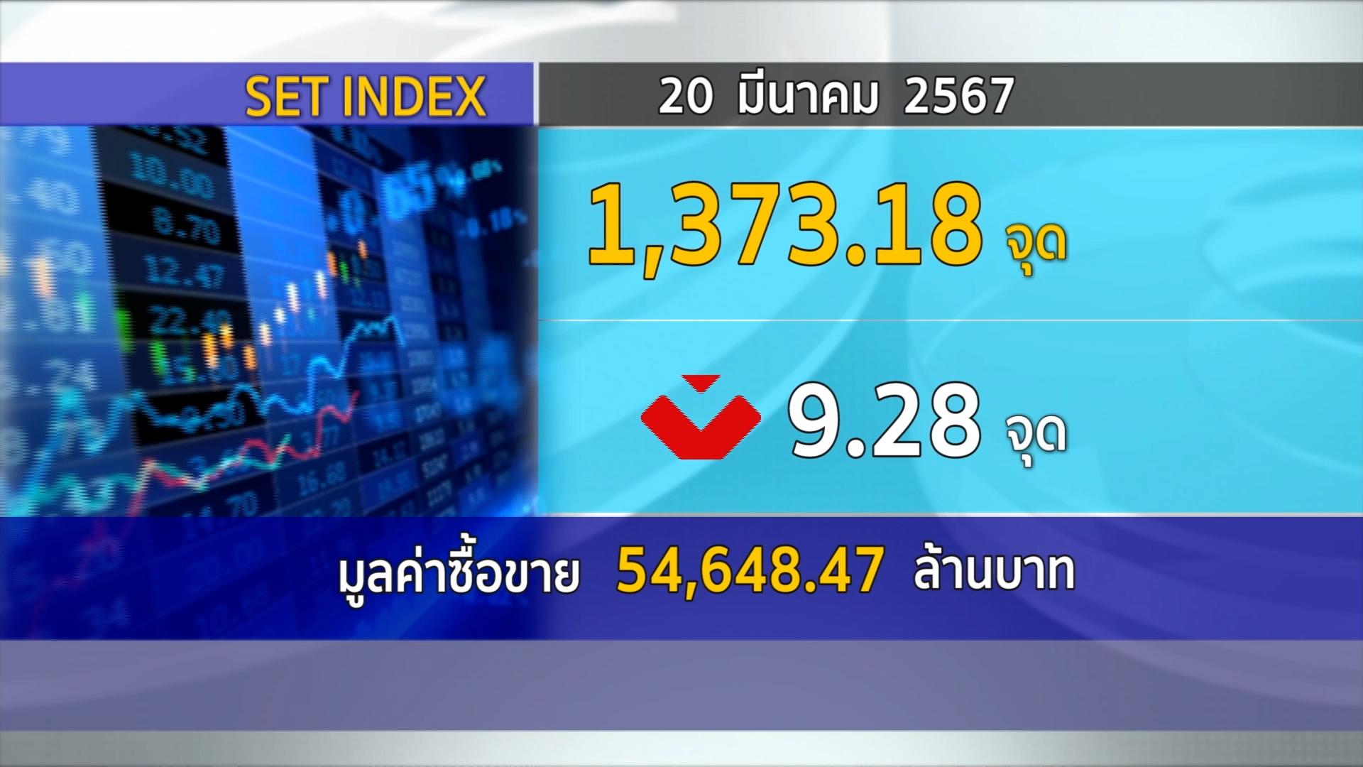 กทม. 20 มี.ค.- SET ปิดวันนี้ที่ 1,373.18 จุด ลดลง 9.28 จุด (-0.67%) มูลค่าการซื้อขาย 54,666.79 ล้านบาท