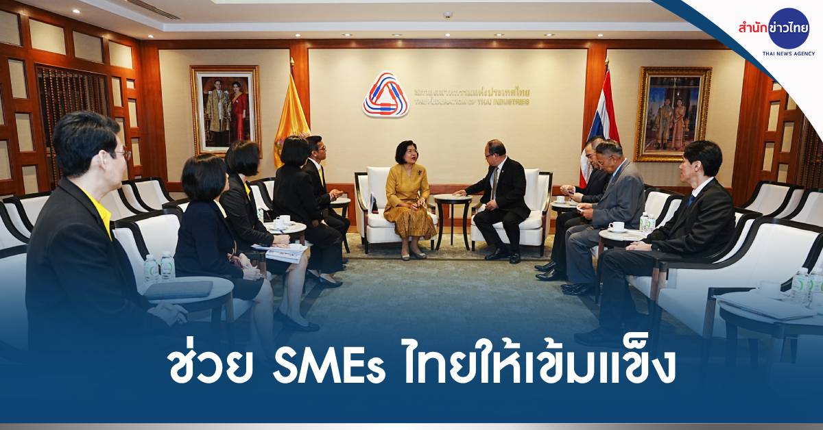 นางอรมน ทรัพย์ทวีธรรม อธิบดีกรมพัฒนาธุรกิจการค้า กระทรวงพาณิชย์ เปิดเผยหลังจากนำคณะผู้บริหารกรมพัฒนาธุรกิจการค้าเข้าพบนายเกรียงไกร เธียรนุกุล ประธานสภาอุตสาหกรรมแห่งประเทศไทย (ส.อ.ท.) และผู้บริหารฯ ว่า ขอขอบคุณประธานสภาอุตสาหกรรมแห่งประเทศไทย และคณะผู้บริหารฯ ที่ให้การต้อนรับเป็นอย่างดี พร้อมเปิดโอกาสให้กรมฯ ได้หารือแนวทางความร่วมมือเร่งช่วยเหลือผู้ประกอบธุรกิจ SMEs ให้เข้มแข็ง สามารถแข่งขันได้อย่างเต็มที่ ซึ่งจากการนำคณะผู้บริหารของกรมพัฒนาธุรกิจการค้าเข้าพบคณะผู้บริหารจากสภาอุตสาหกรรมแห่งประเทศไทยในครั้งนี้ สืบเนื่องมาจากกรมพัฒนาธุรกิจการค้า เร่งดำเนินการตามนโยบายของรองนายกรัฐมนตรีและรัฐมนตรีว่าการกระทรวงพาณิชย์ (นายภูมิธรรม เวชยชัย) และรัฐมนตรีช่วยว่าการกระทรวงพาณิชย์ (นายนภินทร ศรีสรรพางค์) ในการหาทางเพิ่มรายได้ ลดรายจ่ายให้กับผู้ประกอบธุรกิจ ซึ่งนโยบายของกระทรวงพาณิชย์ ตั้งเป้าหมายว่าจะขับเคลื่อน SMEs ของประเทศไทยให้เติบโตและมีสัดส่วนใน GDP เพิ่มขึ้นเป็น 40% ภายในปี 2570 โดยตั้งเป้าหมายไว้ว่า SMEs จะเติบโต มีรายได้เพิ่มขึ้นจากปี 2566 มูลค่า 6.3 ล้านล้านบาท (35.2% ของ GDP) เป็น 6.6 ล้านล้านบาท (36% ของ GDP) ในปี 2567
