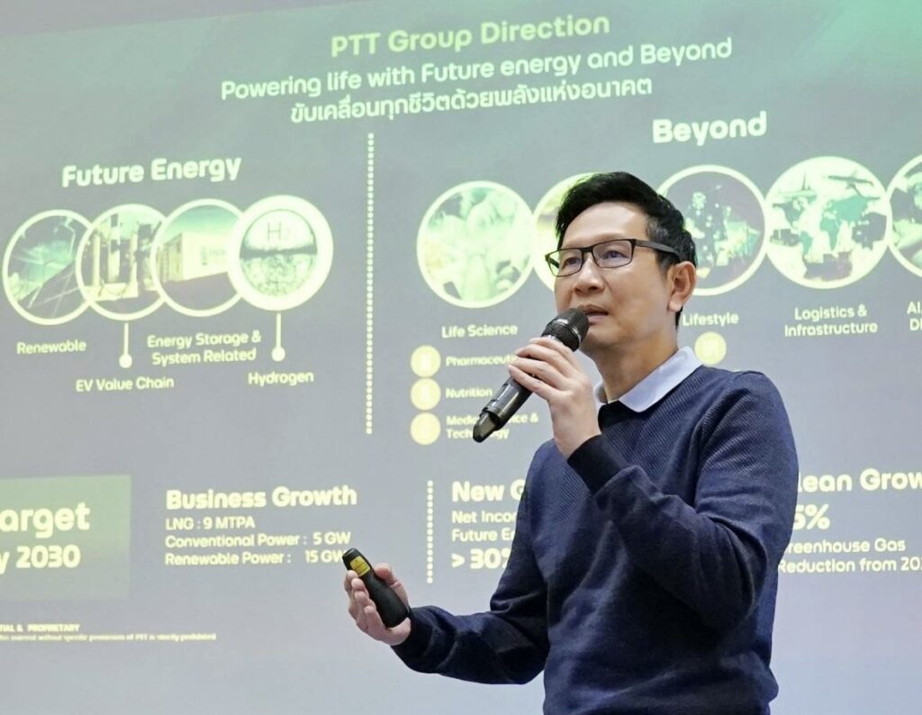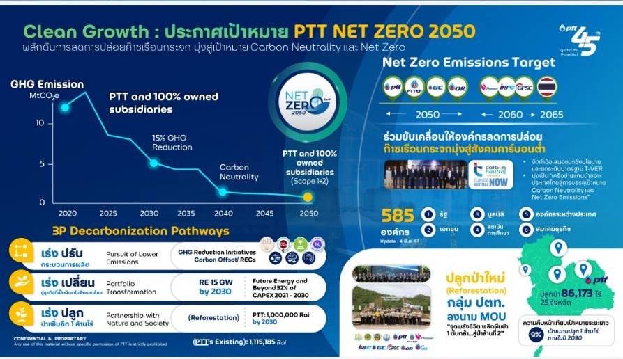 นายอรรถพล ฤกษ์พิบูลย์ ประธานเจ้าหน้าที่บริหารและกรรมการผู้จัดการใหญ่ บริษัท ปตท. จำกัด (มหาชน) (PTT) กล่าวว่า ปตท. ขับเคลื่อนการดำเนินงานภายใต้วิสัยทัศน์ “Powering Life with Future Energy and Beyond ขับเคลื่อนทุกชีวิต ด้วยพลังแห่งอนาคต” เพื่อสร้างความมั่นคงทางพลังงานและเพื่อสนับสนุนแผนการดำเนินงานให้เติบโตไปสู่ธุรกิจพลังงานอนาคตและธุรกิจใหม่ที่ไปไกลกว่าพลังงาน พร้อมประกาศเจตนารมณ์มุ่งมั่นดำเนินธุรกิจเพื่อบรรลุความเป็นกลางทางคาร์บอน (Carbon neutrality) ภายในปี 2583 (ค.ศ.2040) และการปล่อยก๊าซเรือนกระจกสุทธิเป็นศูนย์ (Net Zero Emissions) ภายในปี 2593 (ค.ศ. 2050) ด้วยการเพิ่มสัดส่วนการลงทุนโดยมุ่งธุรกิจใหม่คือ