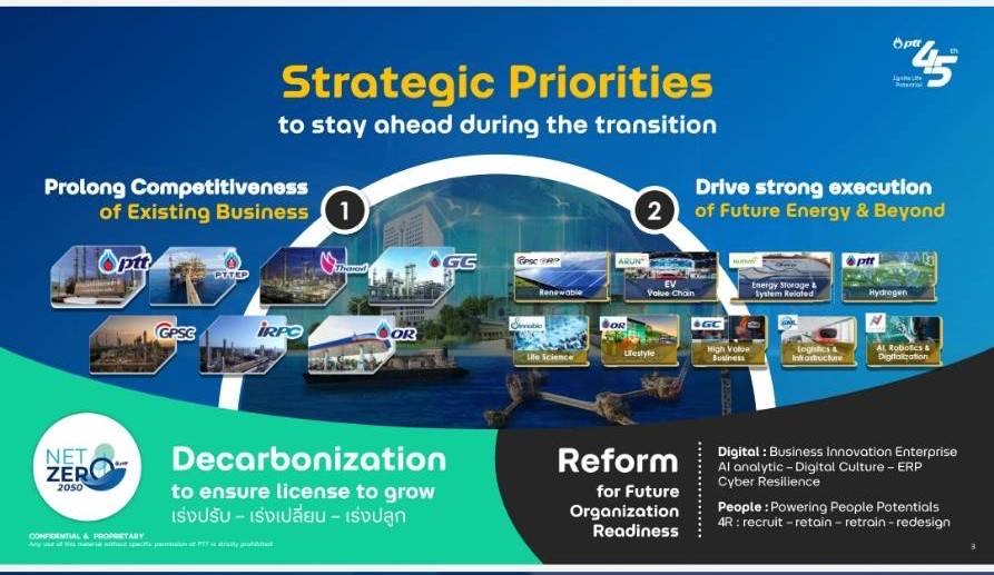 นายอรรถพลกล่าวว่า ปตท. มีเป้าหมายการดำเนินงานใน 3 ด้านคือ
