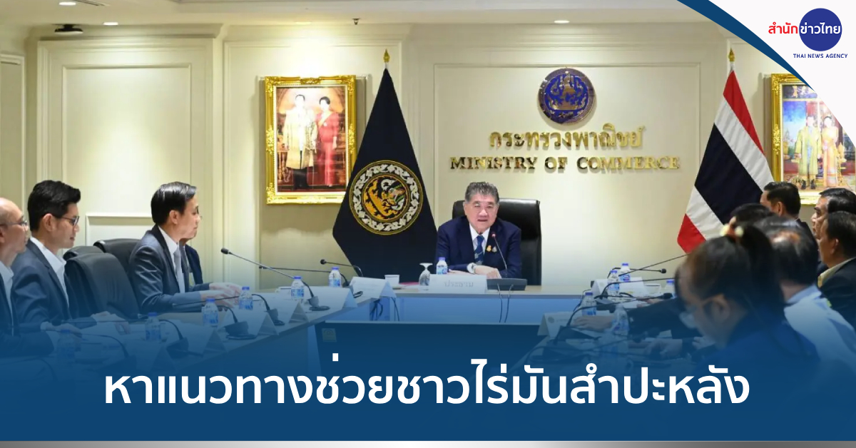นนทบุรี 28 มี.ค. – รมว.พณ. เรียกประชุมเร่งหามาตรการเข้มช่วยชาวไร่มันสำปะหลัง หลังเจอปัญหาโรคใบด่างระบาด และยังเจอลักลอบนำเข้าตามชายแดนเพียบ พร้อมสั่งทุกหน่วยบังคับใช้กฎหมายเต็มที่เพื่อดันราคาสมดุล มั่นใจตลาดโลกยังขาดแคลนอยู่มากโอกาสดีของมันสำปะหลังไทยแน่