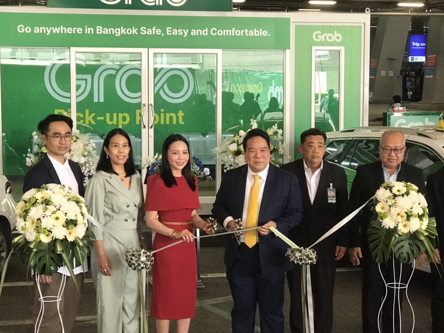 (ประเทศไทย) จำกัด เปิดให้บริการรถรับจ้างสาธารณะผ่าน Grab Application โดยที่ผ่านมาได้เปิดให้บริการแล้วที่ท่าอากาศยานดอนเมือง ท่าอากาศยานเชียงใหม่ และท่าอากาศยานภูเก็ต ซึ่งในวันนี้ AOT และแกร็บแท็กซี่ (ประเทศไทย) ได้เปิด “ศูนย์ให้บริการ Grab ณ ทสภ.” ถือเป็นการเพิ่มทางเลือกในการเดินทางที่หลากหลายมากขึ้นแก่ผู้โดยสารที่ใช้บริการ ทสภ. รวมถึงยกระดับมาตรฐานการบริการของ ทสภ.ให้มีความสะดวก และรวดเร็วยิ่งขึ้น นอกจากนั้นยังได้รับความปลอดภัย เนื่องจากรถแกร็บแท็กซี่ที่มาให้บริการได้ผ่านการรับรองจากกรมการขนส่งทางบก (ขบ.) ถูกต้องตามกฎหมาย รวมทั้งรถแกร็บที่ลงทะเบียนกับกรมการขนส่งทางบกนั้น จะทำให้ผู้ใช้บริการได้รับทราบถึงชื่อคนขับรถและสามารถระบุตัวรถที่จะใช้บริการได้อีกด้วย