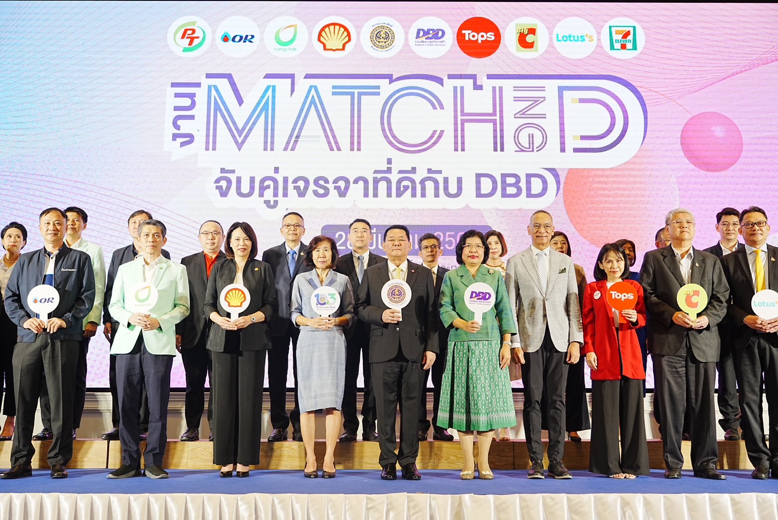 นนทบุรี 28 มี.ค.-รัฐมนตรีพาณิชย์เปิดงาน Matching D จับคู่เจรจาที่ดี กับ DBD ช่วยสร้างอาชีพ ลดรายจ่ายให้ธุรกิจและประชาชน โดยได้รับความร่วมมือจาก 4 สถานีบริการน้ำมันขนาดใหญ่ ได้แก่ เชลล์, บางจาก, โออาร์ และพีทีและร้านค้าปลีกสมัยใหม่ พร้อมด้วย SME ที่สมัครเข้าร่วมกิจกรรมจับคู่ธุรกิจ (Business Matching) และนำเสนอสินค้าเพื่อเข้าสู่ช่องทางจัดจำหน่ายของสถานีบริการน้ำมัน หรือธุรกิจ Modern Trade และ Supermarket ภายในเครือข่ายที่มีอยู่ทั่วประเทศ จะสร้างมูลค่าการค้าเพิ่มขึ้น