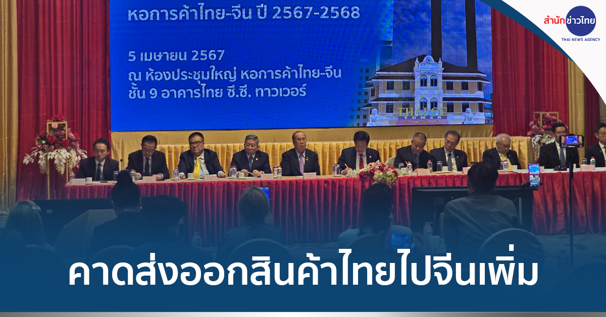 กรุงเทพฯ 5 เม.ย.- หอการค้าไทย-จีนคาดหวัง ปี 2567 – 2568 การส่งออกสินค้าไทยไปจีนเพิ่มขึ้น ตั้งเป้ากระชับความสัมพันธ์ระหว่างไทยกับมณฑลต่างๆ ของจีน
