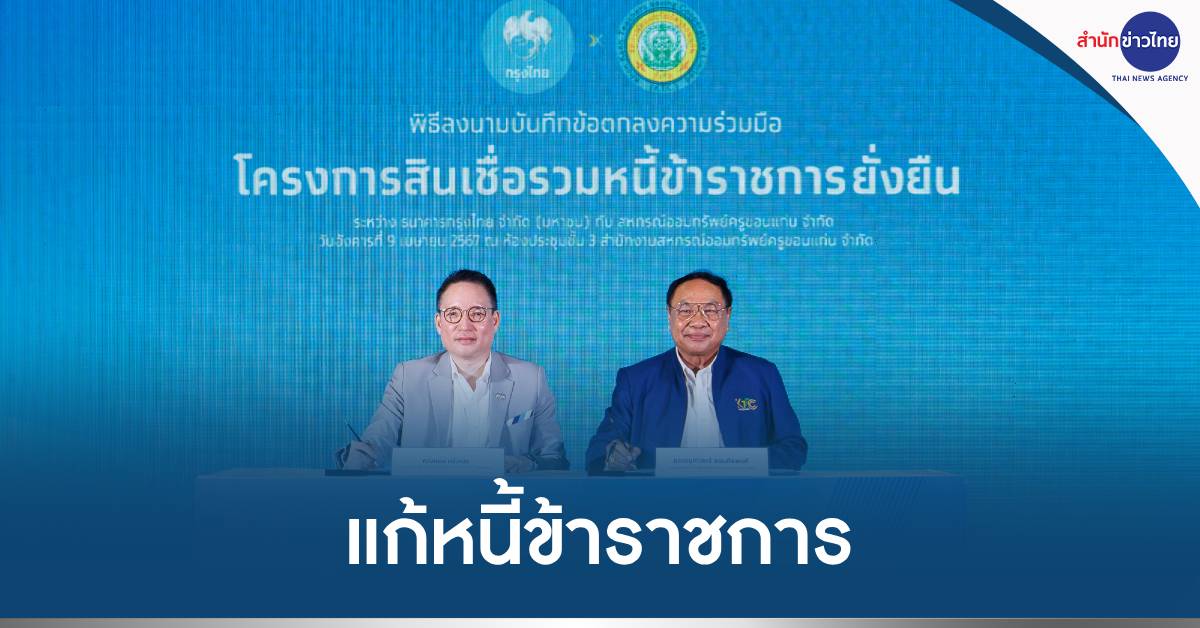 ขอนแก่น 9 เม.ย.-“กรุงไทย” ขานรับนโยบายรัฐ เร่งแก้หนี้ข้าราชการด้วย “สินเชื่อรวมหนี้ข้าราชการยั่งยืน” นำร่องจับมือ “สหกรณ์ออมทรัพย์ครูขอนแก่น” และ “เครดิตบูโร”
