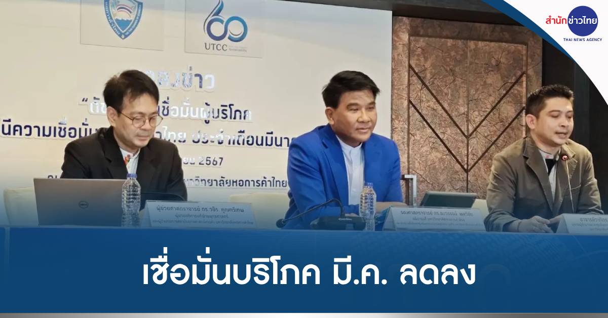 นายธนวรรธน์ พลวิชัย อธิการบดีมหาวิทยาลัยหอการค้าไทย และประธานที่ปรึกษาศูนย์พยากรณ์เศรษฐกิจและธุรกิจ กล่าวถึงดัชนีความเชื่อมั่นของผู้บริโภค (CCI) ประจำเดือนมีนาคม 2567 อยู่ที่ระดับ 63.0 เป็นการปรับตัวลดลงครั้งแรกในรอบ 8 เดือน นับตั้งแต่เดือนสิงหาคม 2566 เนื่องจากผู้บริโภค เริ่มกลับมากังวลเกี่ยวกับเศรษฐกิจที่ยังฟื้นตัวช้า และยังกังวลเกี่ยวกับสถานการณ์เศรษฐกิจโลกที่ชะลอตัว รวมทั้งปัญหาสงครามในตะวันออกลาง ที่ยังยืดเยื้อบานปลาย อาจจะเพิ่มแรงกดดันให้ เศรษฐกิจไทยฟื้นตัวช้าลงไปอีก ประกอบกับราคาพลังงาน ที่ปรับตัวสูงขึ้นโดยเฉพาะน้ำมันเบนซิน