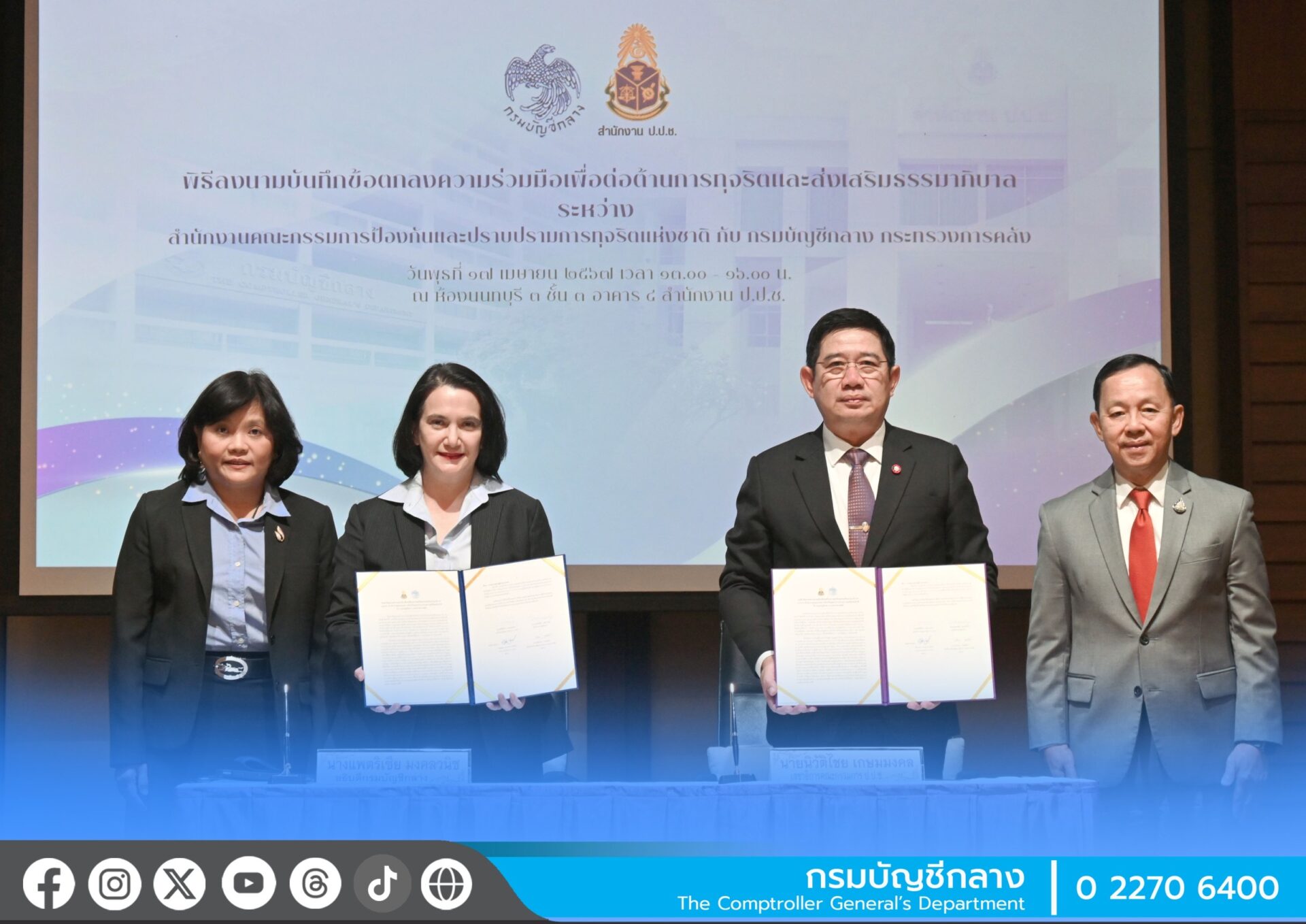 กรุงเทพฯ 18 เม.ย.-กรมบัญชีกลาง จับมือ ป.ป.ช. ต่อต้านทุจริตจัดซื้อจัดจ้างภาครัฐ