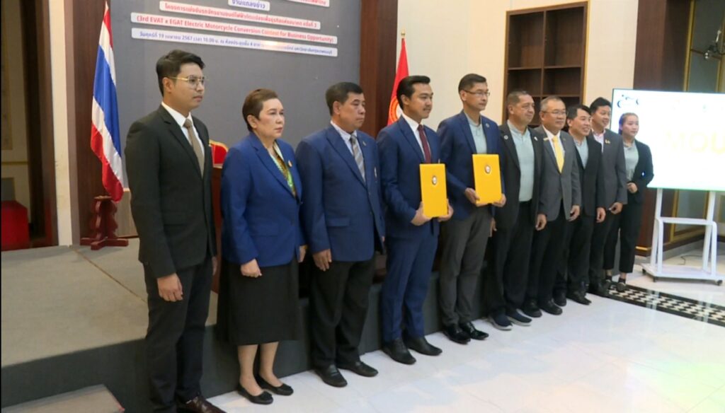 กรุงเทพฯ 19 เม.ย. – สมาคมยานยนต์ไฟฟ้าไทย -กฟผ.- ม.กรุงเทพธนบุรี จัดแข่งรถ จยย.ไฟฟ้าดัดแปลงครั้งที่3 26-27 เม.ย. 67 พร้อมลงนามบันทึกข้อตกลงความร่วมมือทางวิชาการ เพื่อการผลิตและพัฒนาสมรรถนะกำลังคน ด้านยานยนต์ไฟฟ้า และการพัฒนาเทคโนโลยีที่เกี่ยวข้องกับยานยนต์ไฟฟ้า