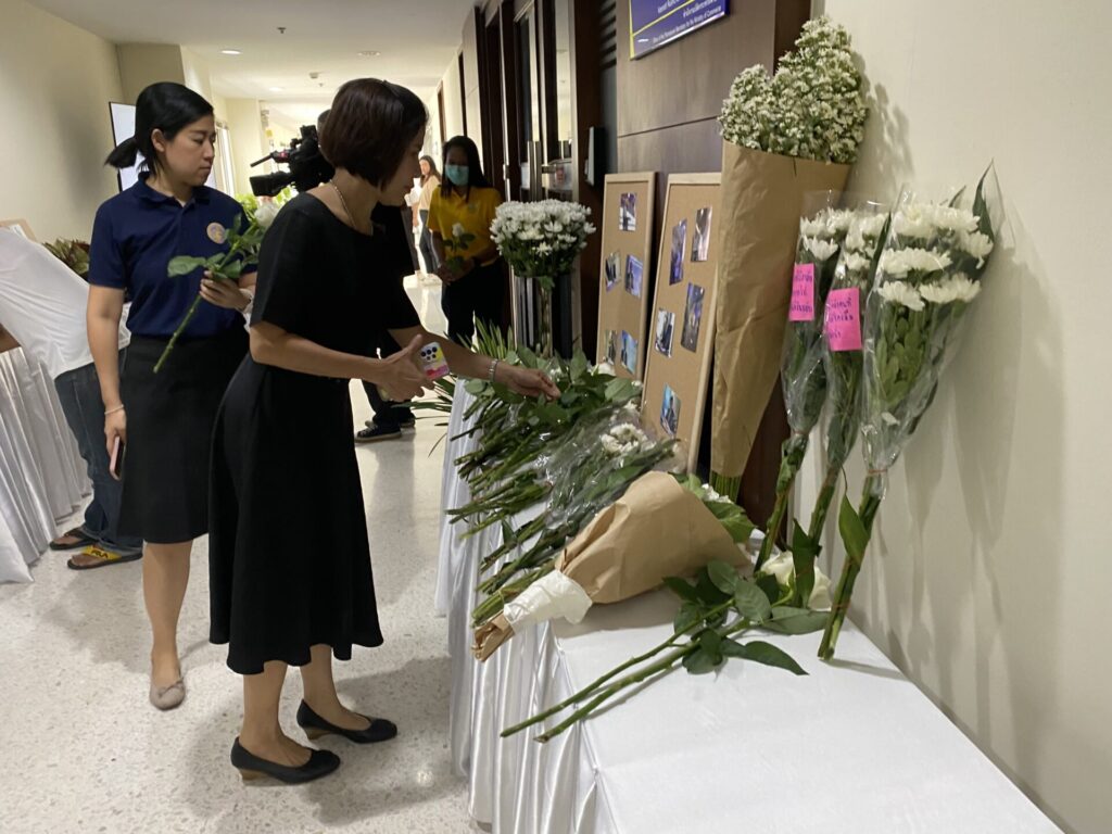 นนทบุรี 22 เม.ย.-เหล่าข้าราชการกระทรวงพาณิชย์ได้กราบลาท่านปลัดพาณิชย์บริเวณหน้าห้องทำงานชั้น 10 พร้อมเซ็นข้อความระลึกถึงก่อนในช่วงเย็นจะมีข้าราชการบางส่วนไปร่วมในพิธีบำเพ็ญกุศลสวดพระอภิธรรมนายกีรติ รัชโน ปลัดกระทรวงพาณิชย์ ทางครอบครัวขอแจ้งงดรับซองทำบุญสามารถร่วมทำบุญให้พ่อจั่นร่วมบริจาคเงินเข้า มูลนิธิรามาธิบดี เพื่อสมทบทุนสร้างโรงพยาบาลรามาธิบดี
