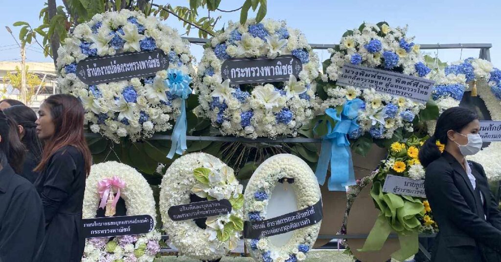 ทั้งนี้ ในเวลา 16.00 น.นายเศรษฐา ทวีสิน นายกรัฐมนตรีและนายภูมิธรรม เวชยชัย รองนายกรัฐมนตรีและรัฐมนตรีว่าการกระทรวงพาณิชย์ พร้อมด้วยผู้บริหารกระทรวงพาณิชย์ รวมถึงนายจุรินทร์ ลักษณวิศิษฏ์ อดีตรองนายกรัฐมนตรีและรัฐมนตรีว่าการกระทรวงพาณิชย์และอดีตผู้บริหารกระทรวงพาณิชย์และภาคเอกชนจะร่วมพิธีรดน้ำศพ และในเวลา 18.00 น.สวดพระอภิธรรม และวันที่ 23-26 เม.ย.67 เวลา 18.00 น.สวดพระอภิธรรมทุกคืน