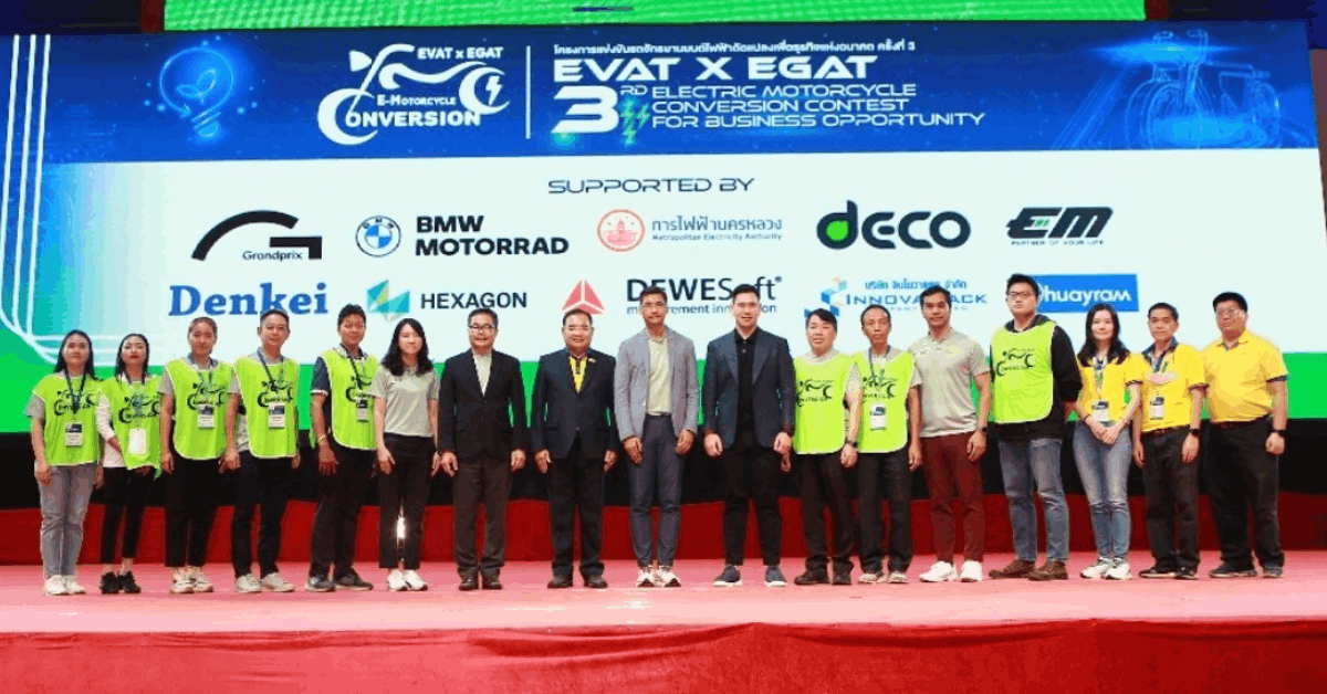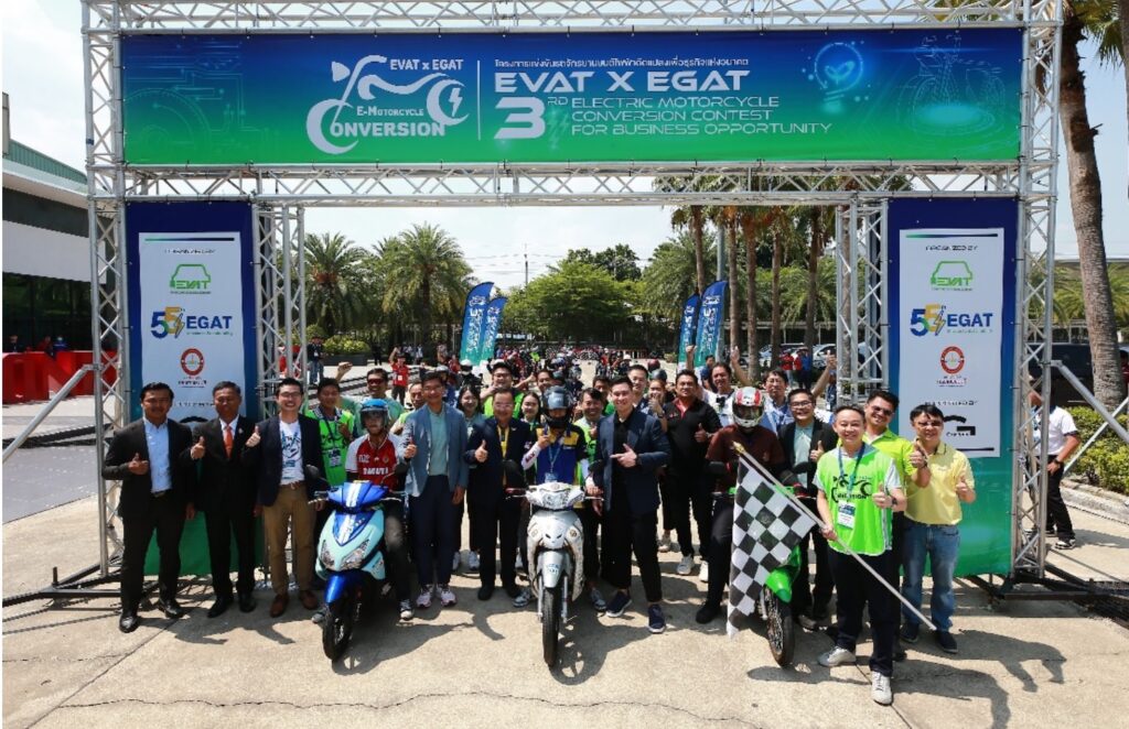 สมาคมยานยนต์ไฟฟ้าไทย (EVAT) ร่วมกับการไฟฟ้าฝ่ายผลิตแห่งประเทศไทย (กฟผ.) และมหาวิทยาลัยกรุงเทพธนบุรี จัดการแข่งขันรถจักรยานยนต์ไฟฟ้าดัดแปลงเพื่อธุรกิจแห่งอนาคต EVAT x EGAT Electric Motorcycle Conversion Contest for Business Opportunity ครั้งที่ 3 ในระหว่างวันที่ 26 – 27 เมษายน พ.ศ. 2567 โดยมีนายกฤษฎา อุตตโมทย์ นายกสมาคมยานยนต์ไฟฟ้าไทย นายสมศักย์ ปรางทอง ผู้อำนวยการฝ่ายจัดการด้านการใช้พลังงานและสิ่งแวดล้อม การไฟฟ้าฝ่ายผลิตแห่งประเทศไทย (กฟผ.) และ รองศาสตราจารย์ ดร.ดวงฤทธิ์ เบ็ญจาธิกุล ชัยรุ่งเรือง สมาชิกสภาผู้แทนราษฎร (ผู้แทนอธิการบดีมหาวิทยาลัยกรุงเทพธนบุรี) พร้อมด้วยหน่วยงานพันธมิตรที่เกี่ยวข้อง เข้าร่วมงาน ณ มหาวิทยาลัยกรุงเทพธนบุรี